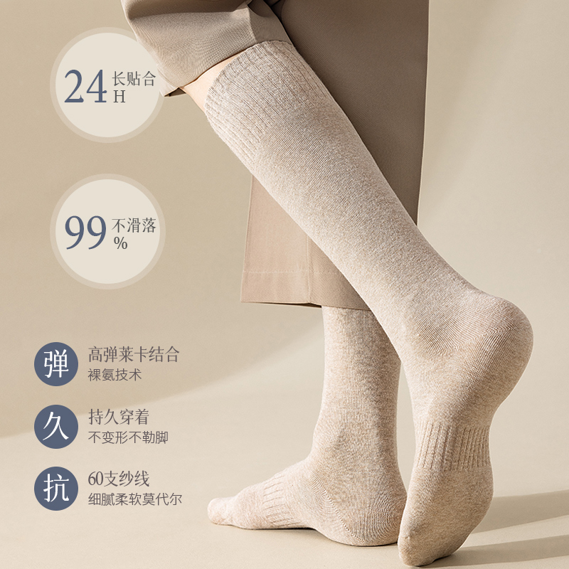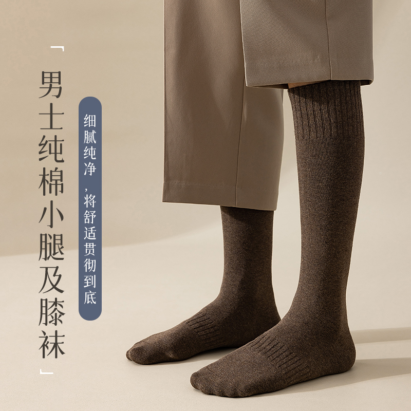 长袜子男士 小腿袜防臭吸汗纯棉黑色高筒无骨保暖全棉长筒袜 秋冬季