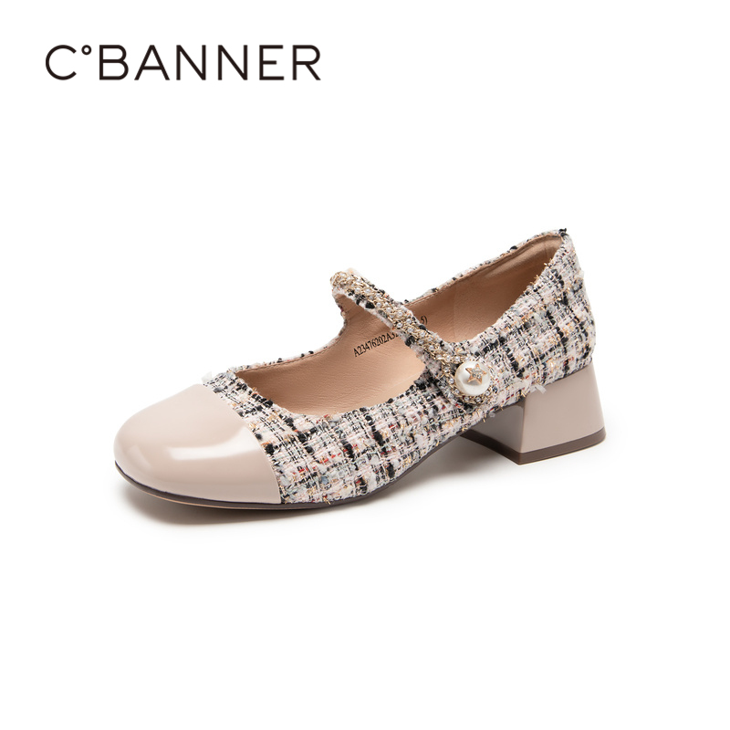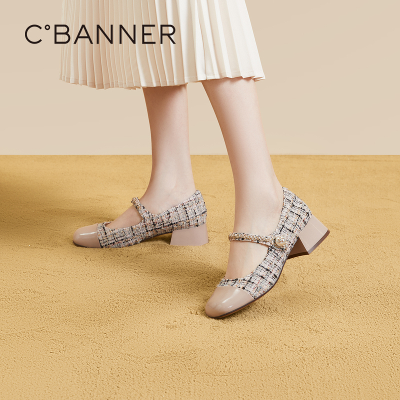 小香风玛丽珍鞋 拼色浅口晚晚鞋 秋季 中跟单鞋 新款 千百度女鞋