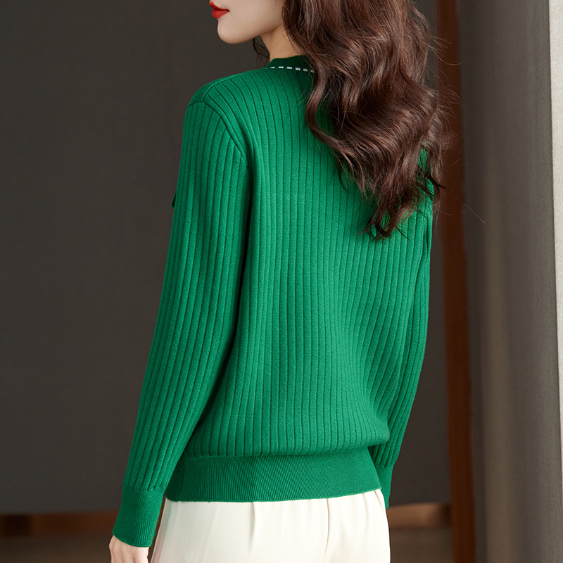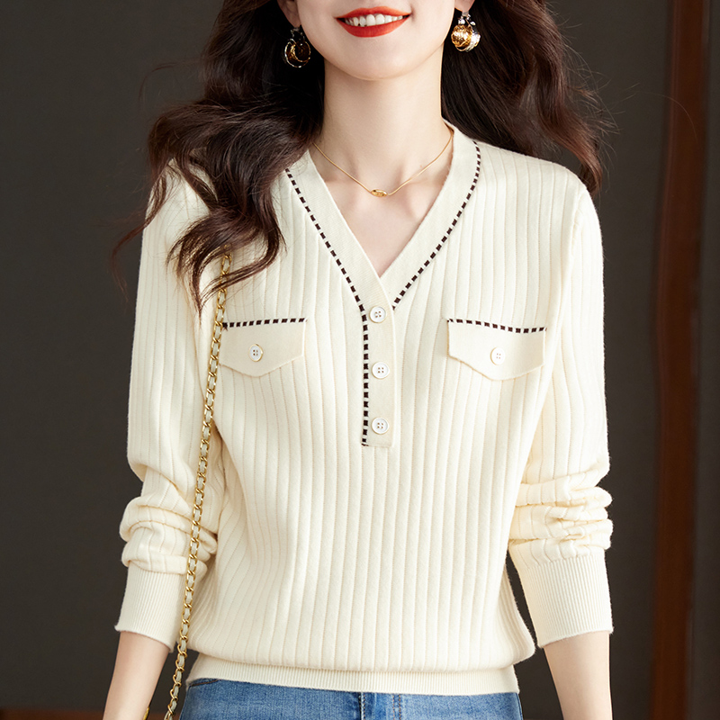 上衣修身 纯色套头长袖 小香风毛衣 2023新款 秋冬女士v领针织打底衫