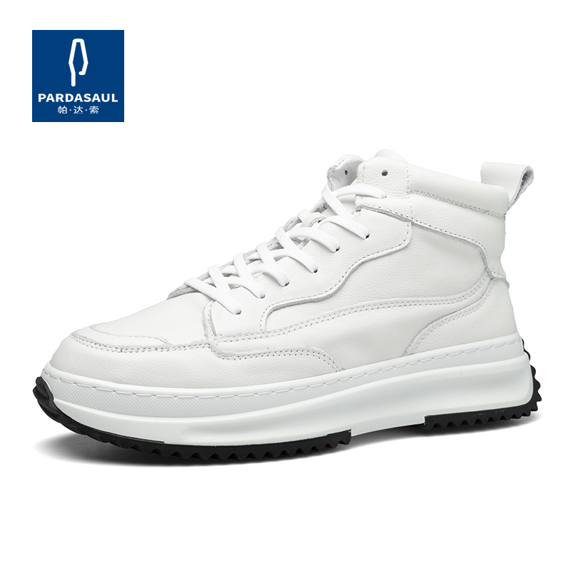 靴子 真皮防水厚底增高工装 森马马丁靴男秋季 高帮百搭休闲白色板鞋