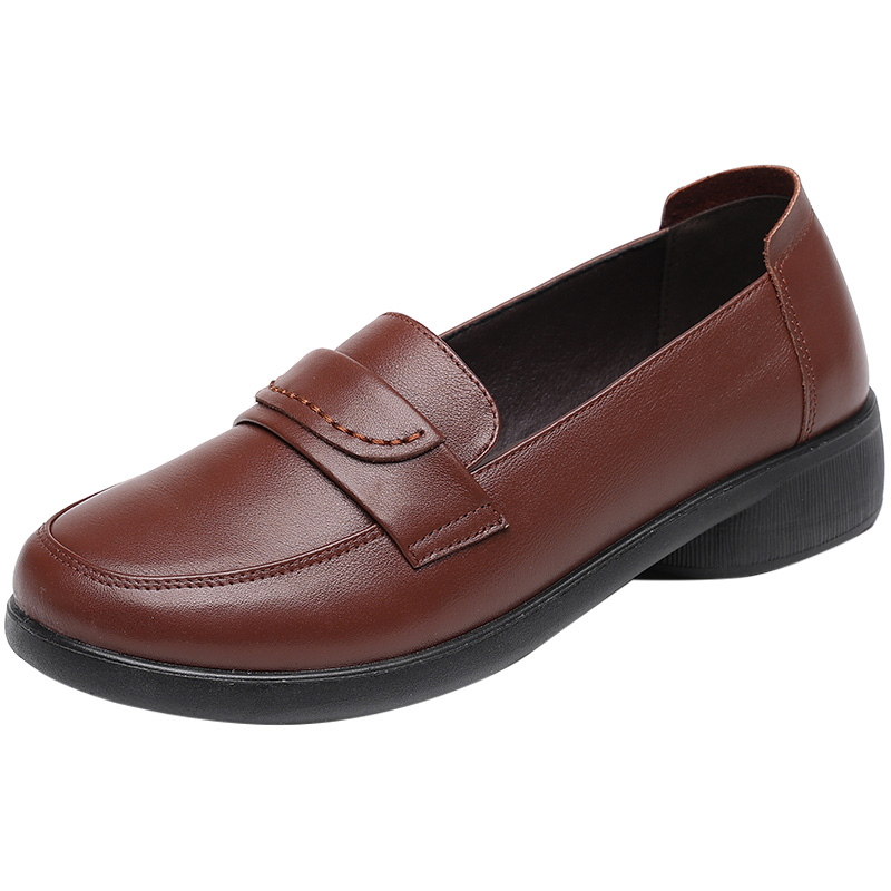 仙女风瓢鞋 秋季 浅口百搭中跟奶奶鞋 大码 真皮单鞋 女鞋 粗跟2025新款