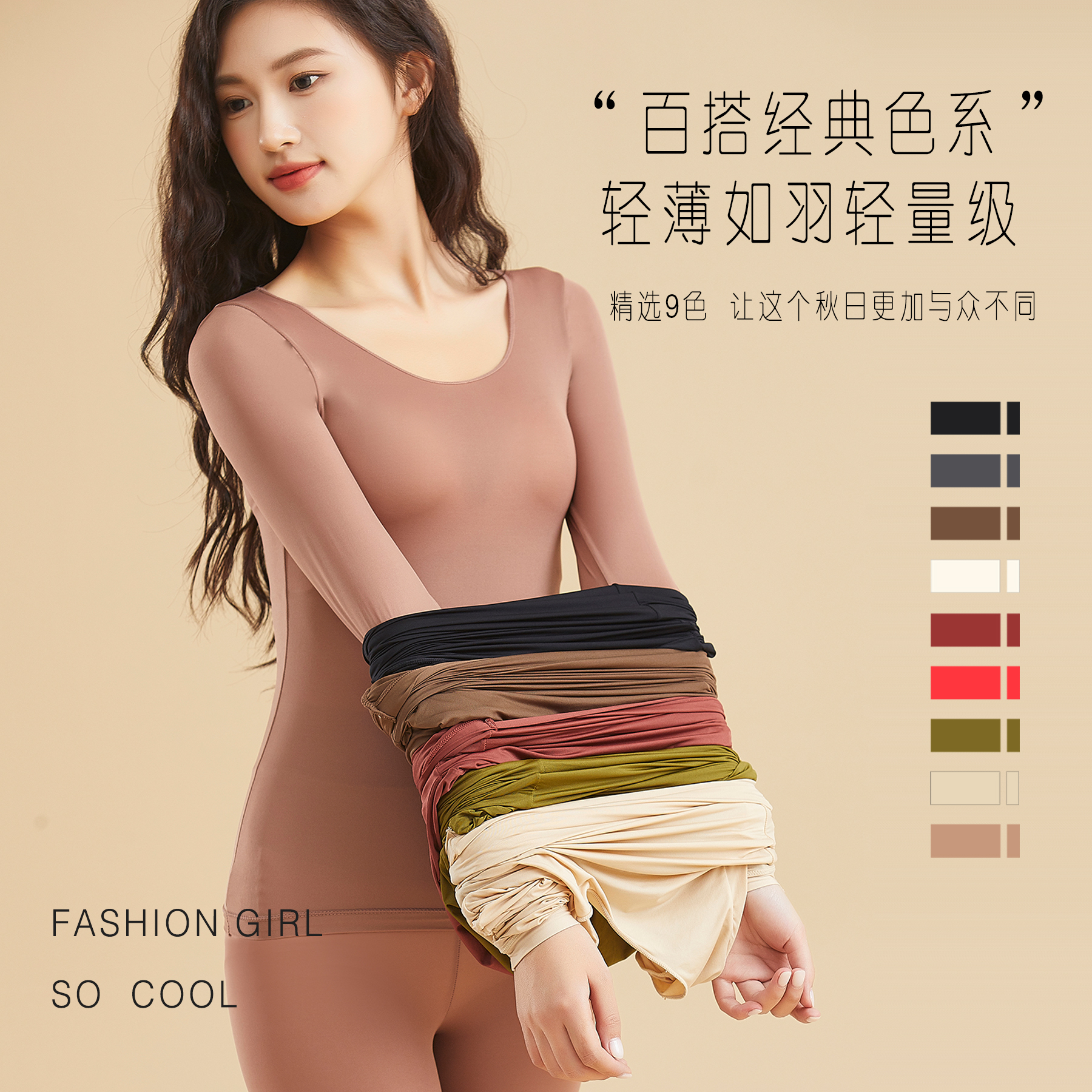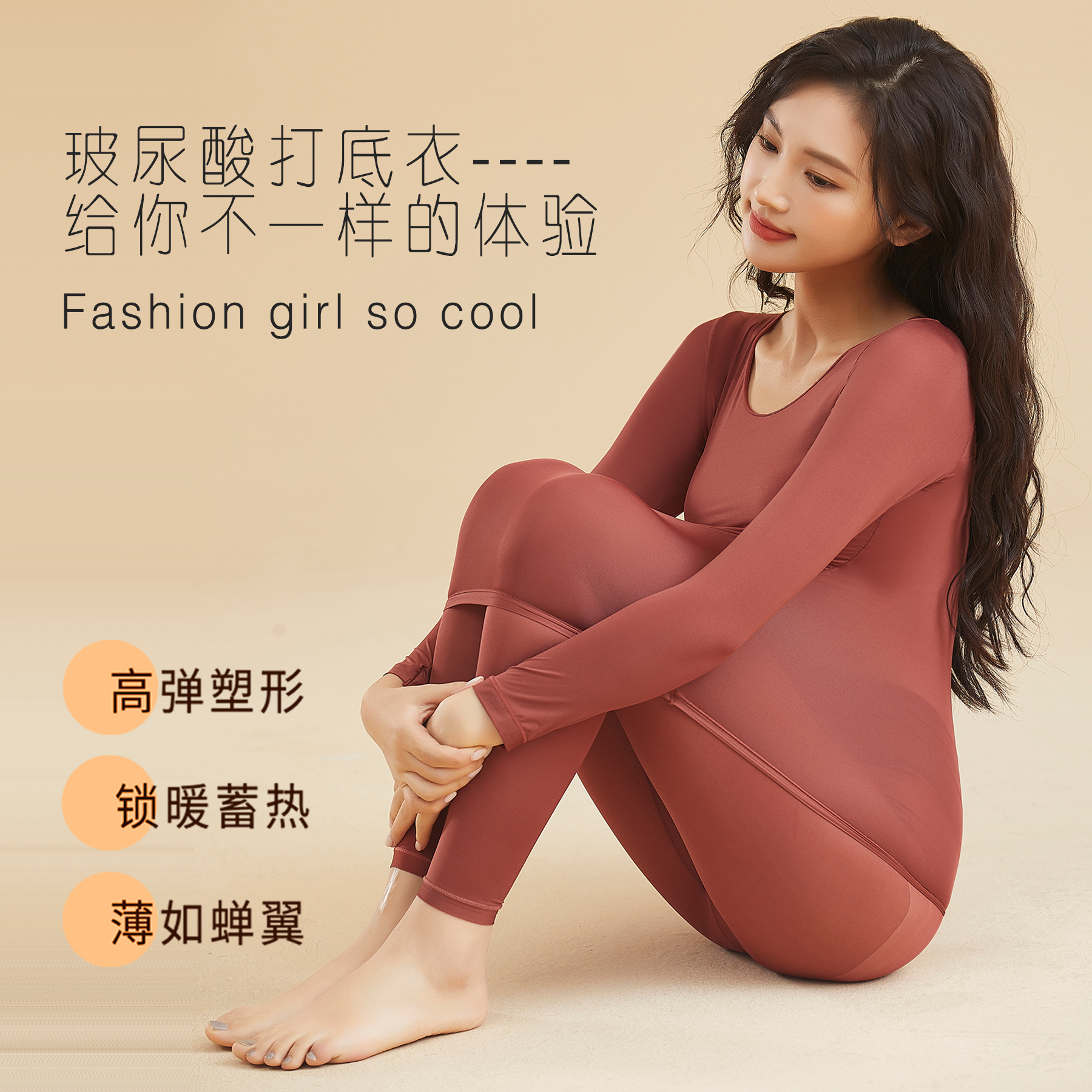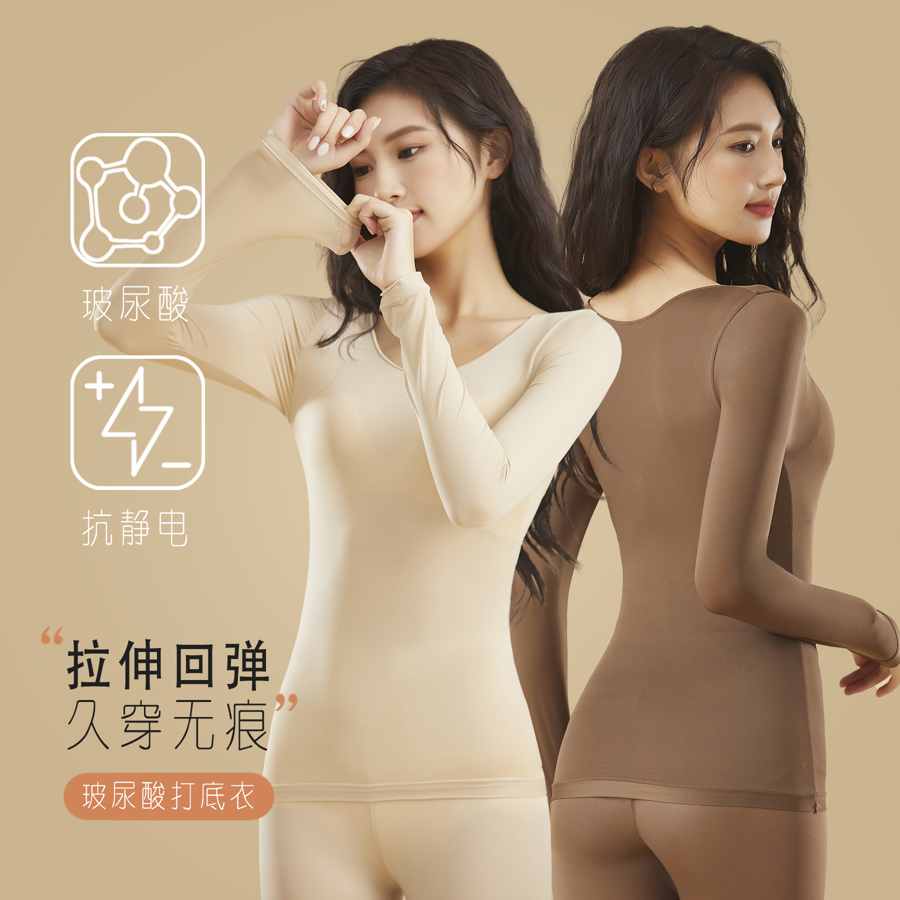 女士秋冬内搭高弹长袖 套装 修身 保暖秋衣秋裤 打底衫 无痕玻尿酸大码