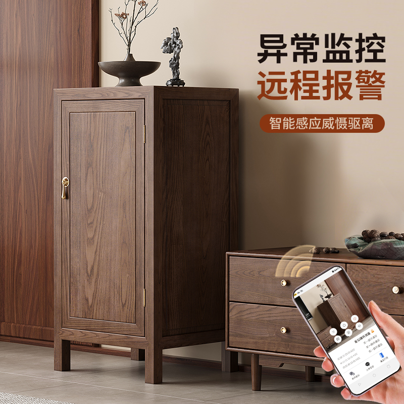 实木保险箱小型91CM办公大容量卧室客厅指纹玄关柜隐形搬不走100斤 2025新款 虎牌新中式 保险柜家用防盗隐藏式