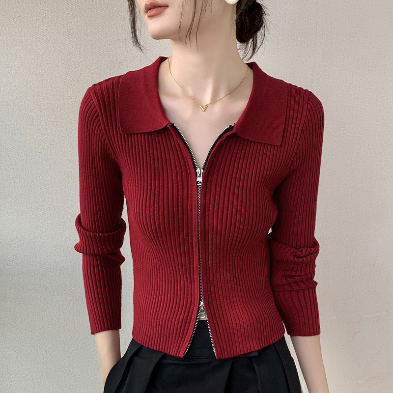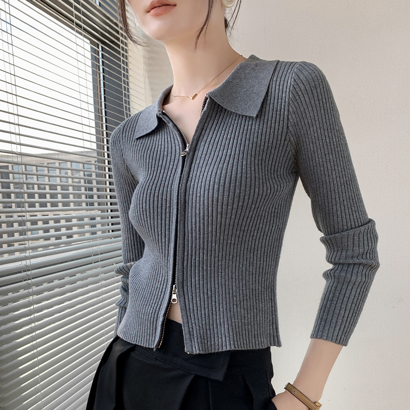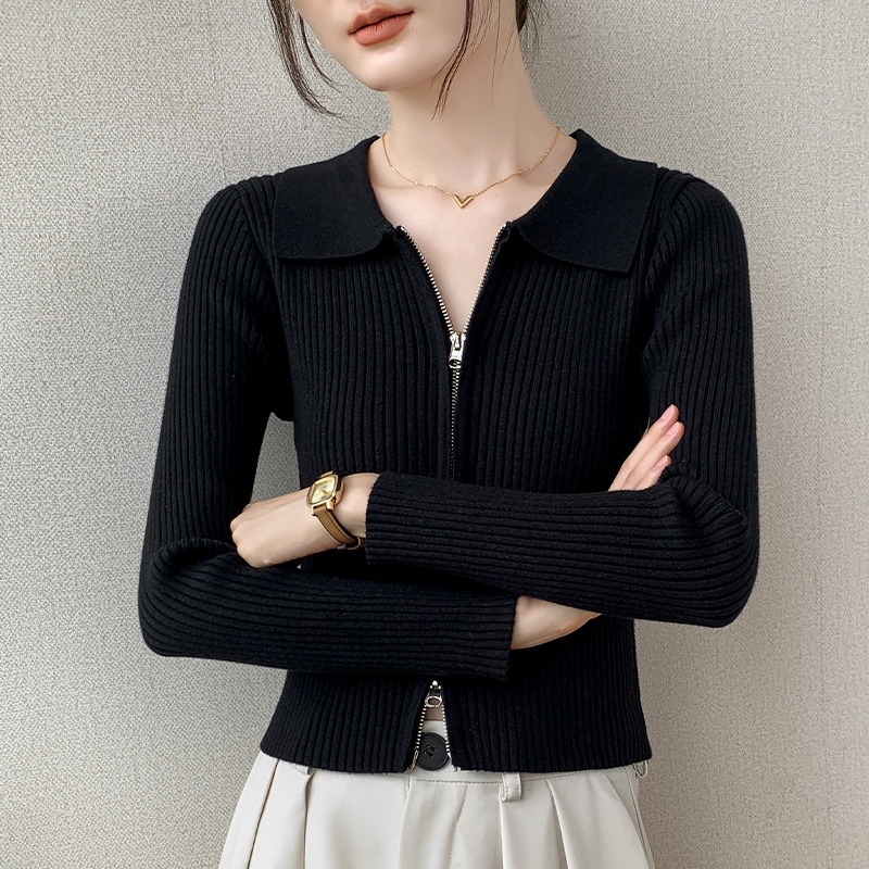 内搭外穿针织开衫 修身 外套上衣 翻领拉链毛衣女2025早秋长袖 法式