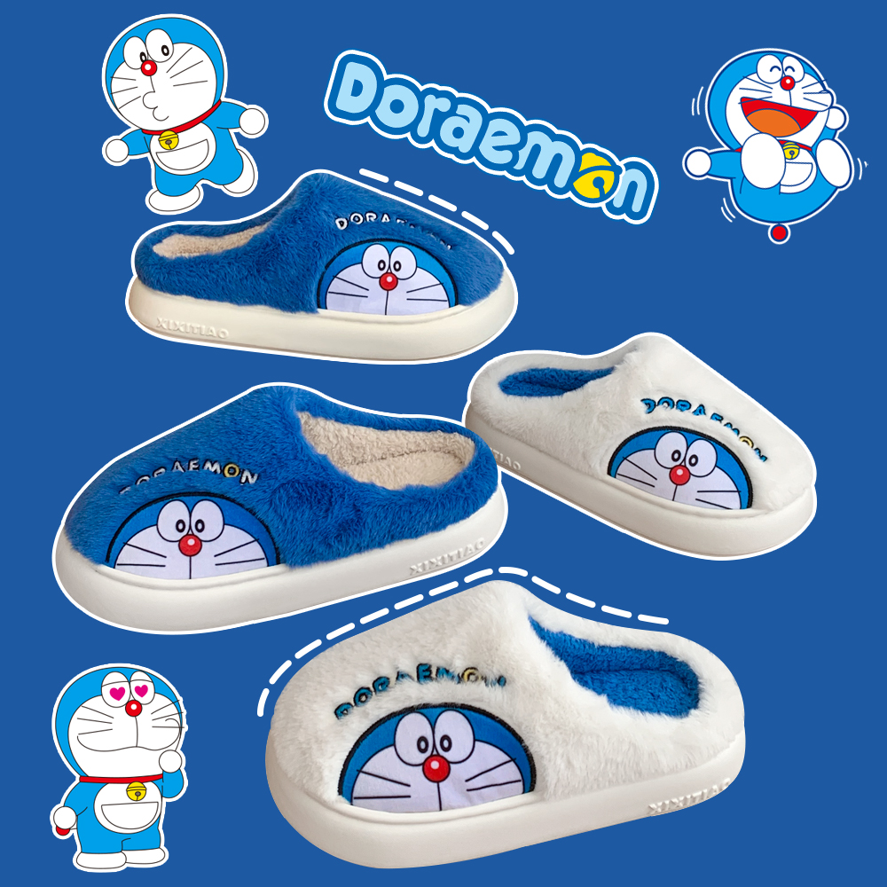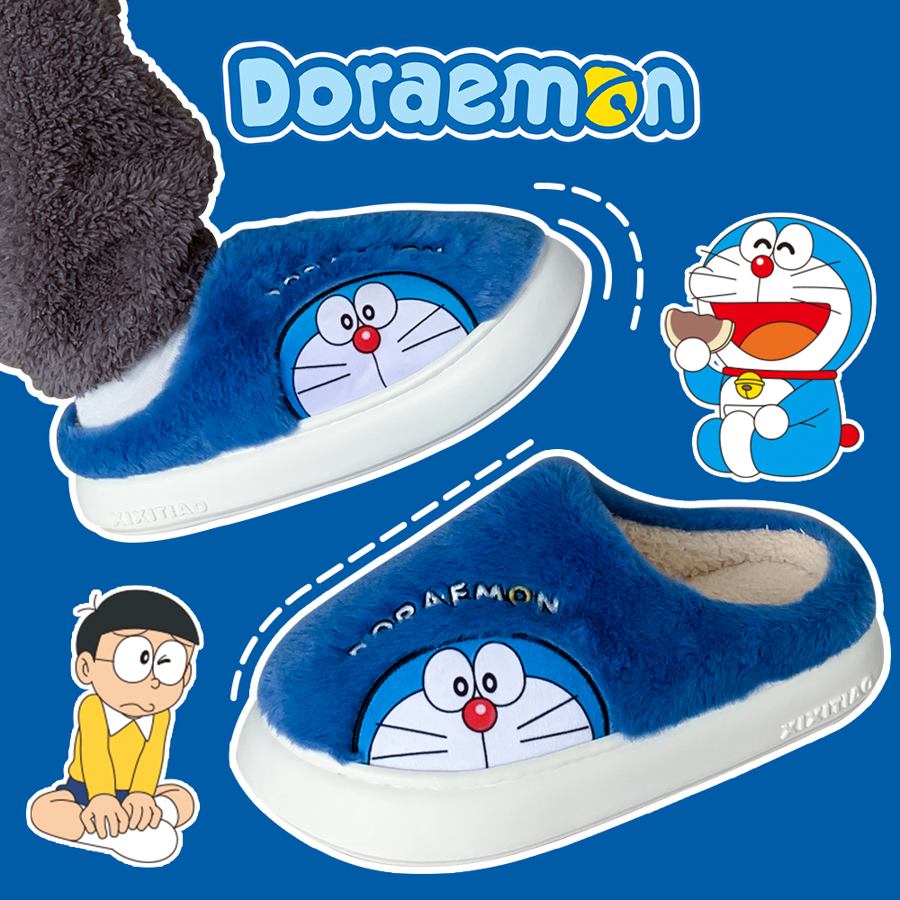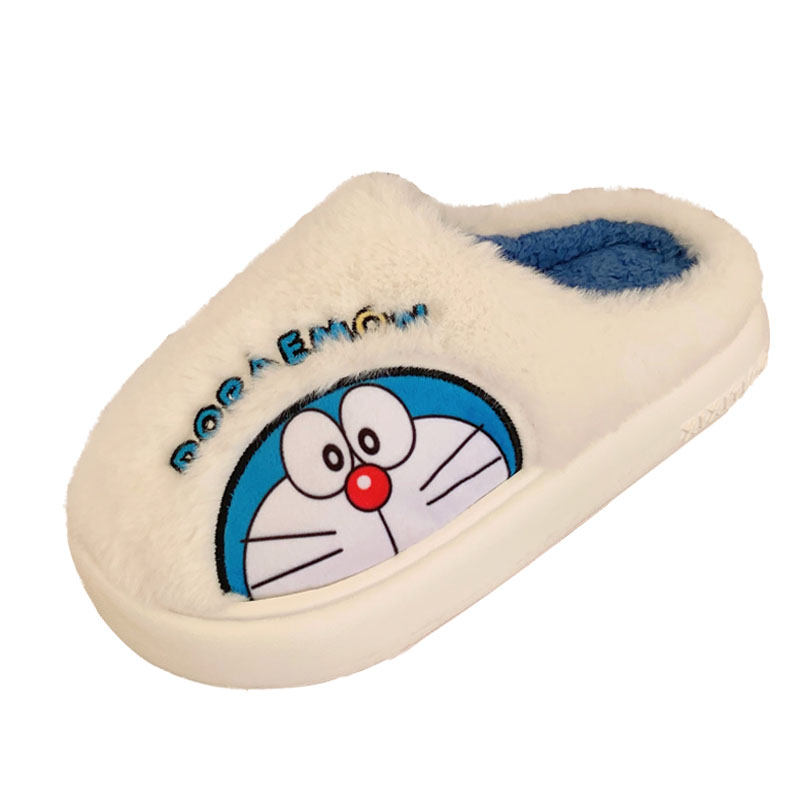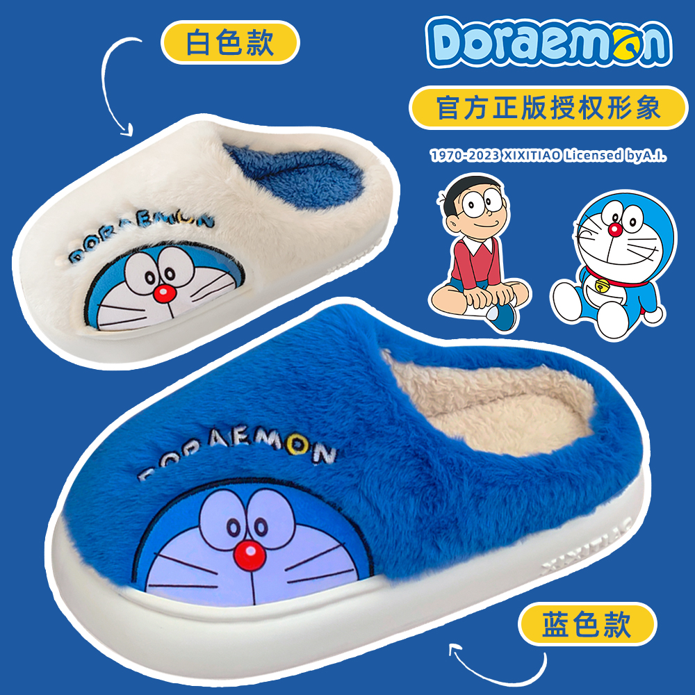男女 舒适居家防滑保暖毛绒月子鞋 情侣可爱哆啦A梦厚底棉拖鞋 冬季