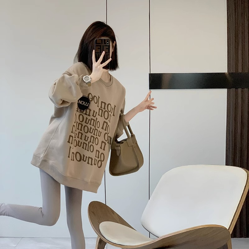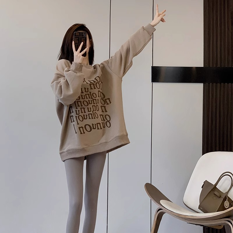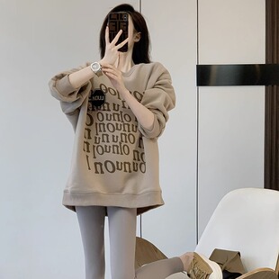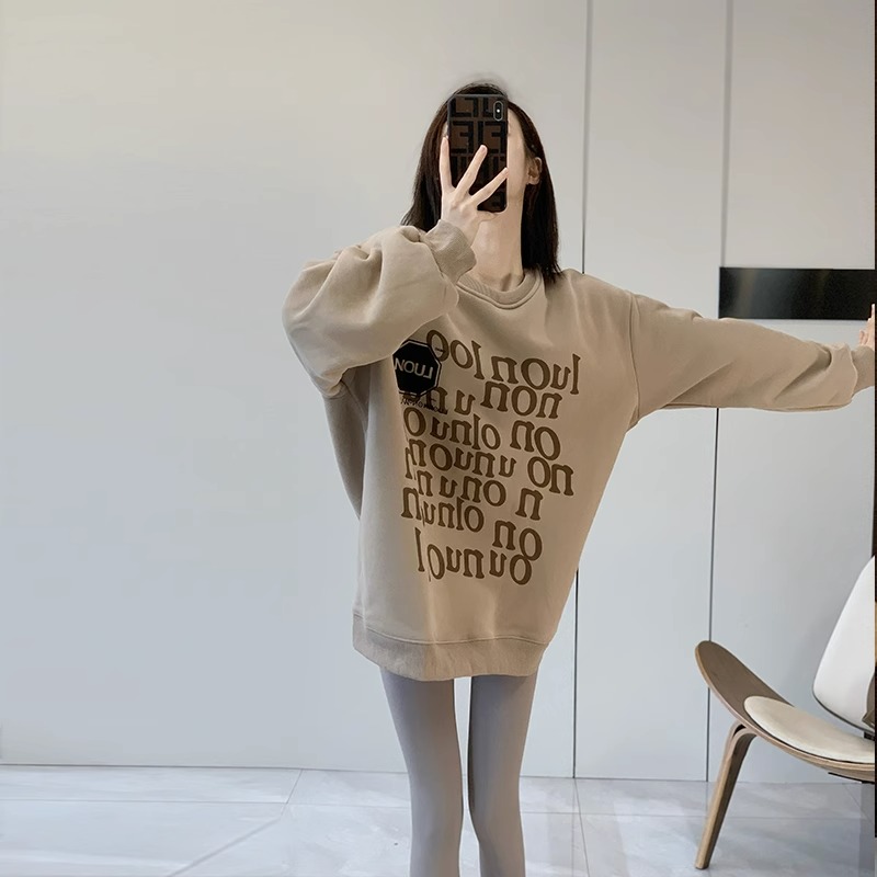 早秋欧货春秋薄款 卡其色秋季 2025爆款 遮屁股卫衣女新款 加绒 中长款