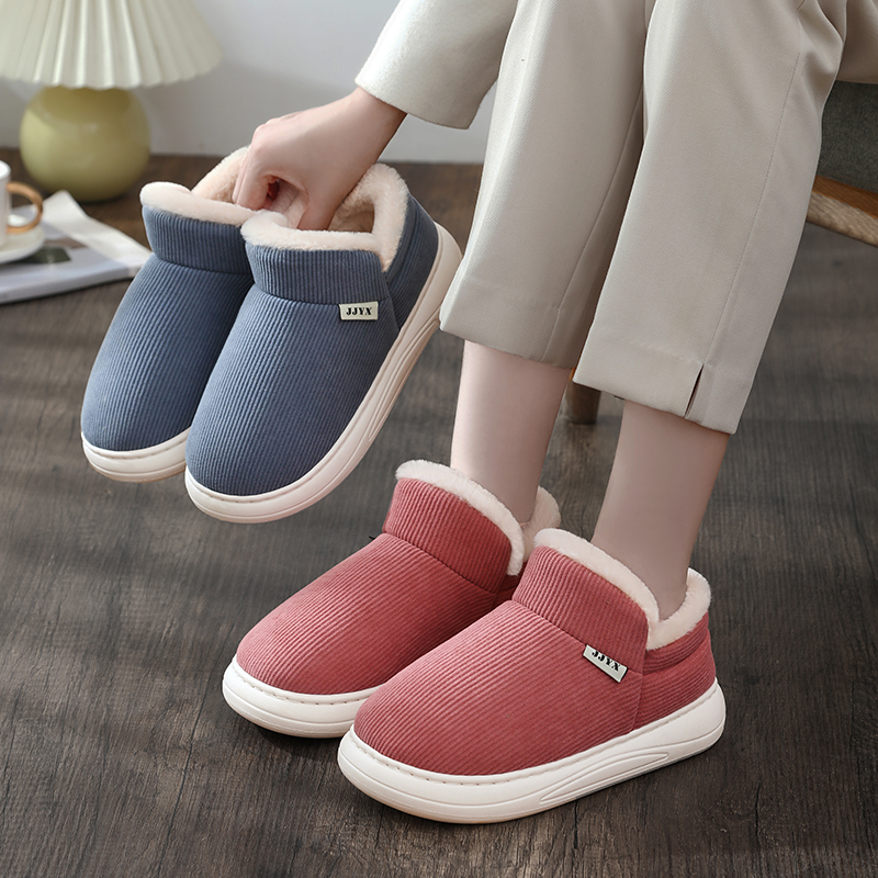 家居厚底毛毛全包跟带后跟防滑加绒家居棉鞋 女士保暖棉拖鞋 冬季