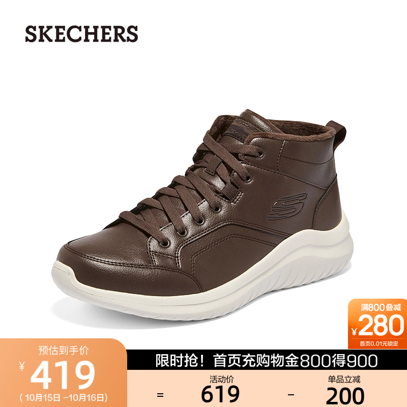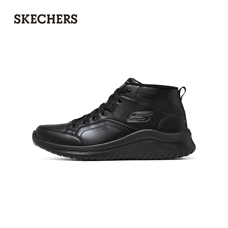 加绒保暖高帮皮鞋 斯凯奇男鞋 轻便舒适休闲鞋 款 百搭黑武士冬靴 冬季