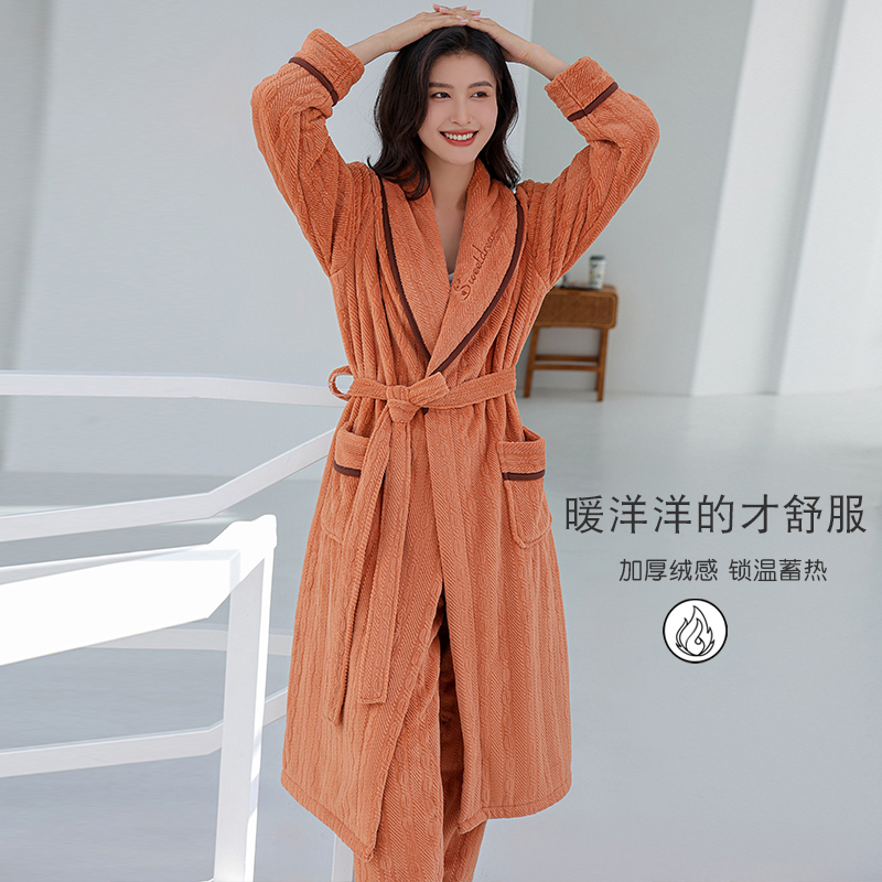 睡衣女秋冬长款 可爱加厚保暖女士睡袍珊瑚绒浴袍 法兰绒家居服韩版