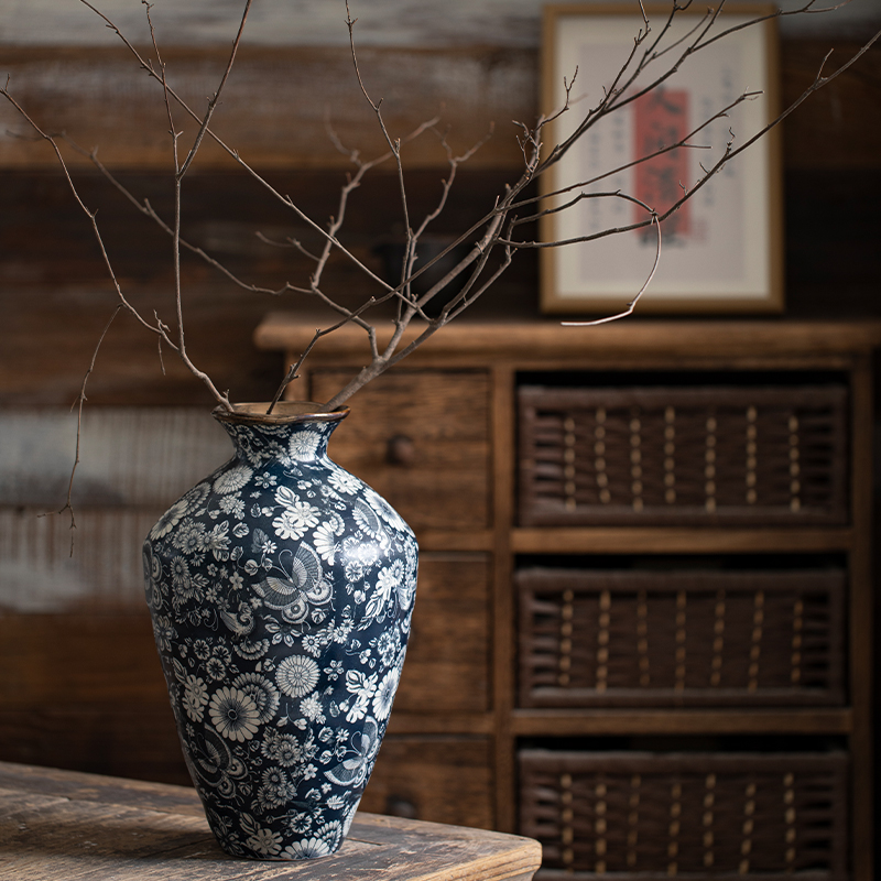 景德镇青花陶瓷花瓶新中式 饰摆件 插花水培花器家居民宿玄关复古装