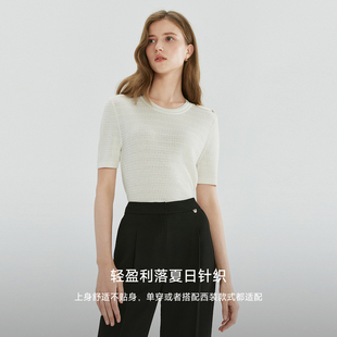 莱赛尔醋酸 夏款 PRICH绞花圆领薄款 针织衫 淡人穿搭上衣女 短袖