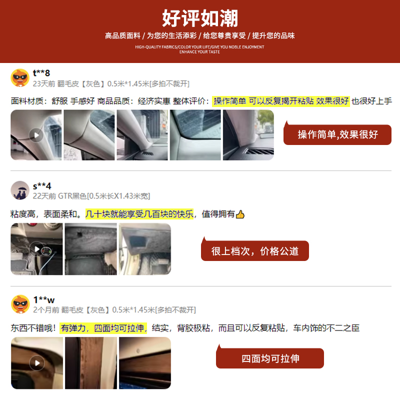 汽车内饰改装 翻新自粘贴布麂皮绒布面料顶棚修复补丁贴自粘翻毛皮