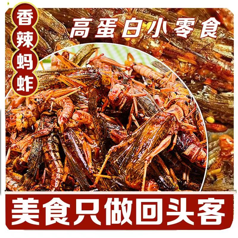 现做现发新鲜油炸蚂蚱香辣大蚂蚱昆虫蚱蜢蝗虫香辣五香即食小吃