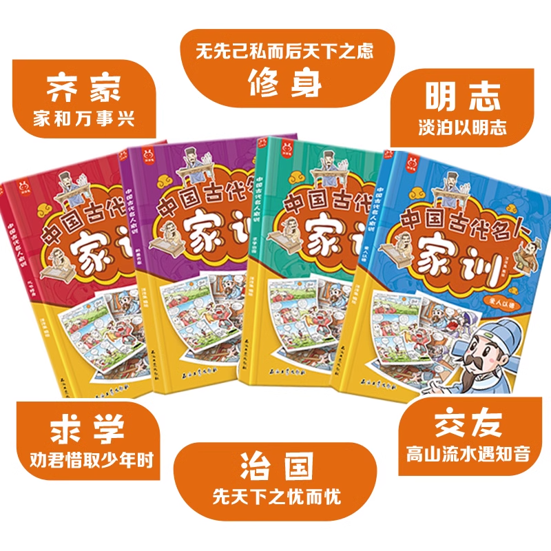 15岁朱子家训颜氏曾国藩家书庭训格言诫子书培养孩子良好道德品格儿童家庭教育家规家风家训智慧 4册7 正版 中国古代名人家训漫画版