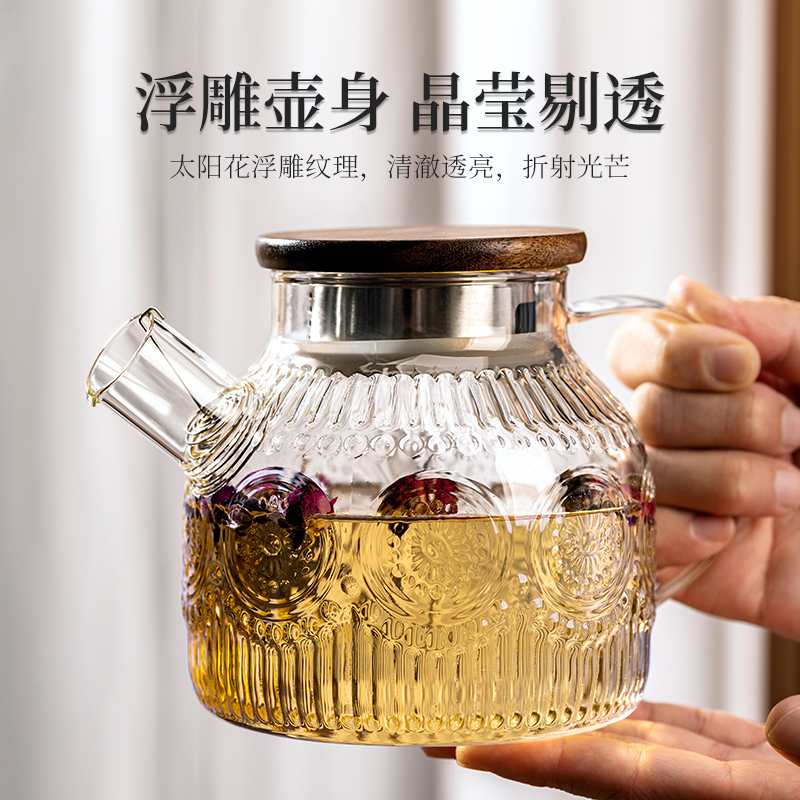 玻璃太阳花茶壶耐热高温家用电陶炉烧水养生煮茶具套装 大号单壶厚