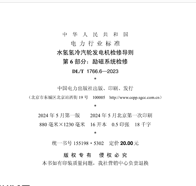 水氢氢冷汽轮发电机检修导则 1766.6—2023 DL/T 第6部分:励磁系统检修 按需印刷