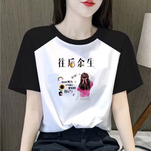 t恤女装 初中学生撞色插肩袖 半袖 2025年新款 上衣 夏季 纯棉宽松短袖