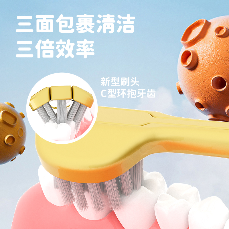 儿童三面牙刷软毛3到6一12岁换牙期U型3d立体牙刷抗菌护齿小学生