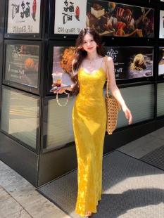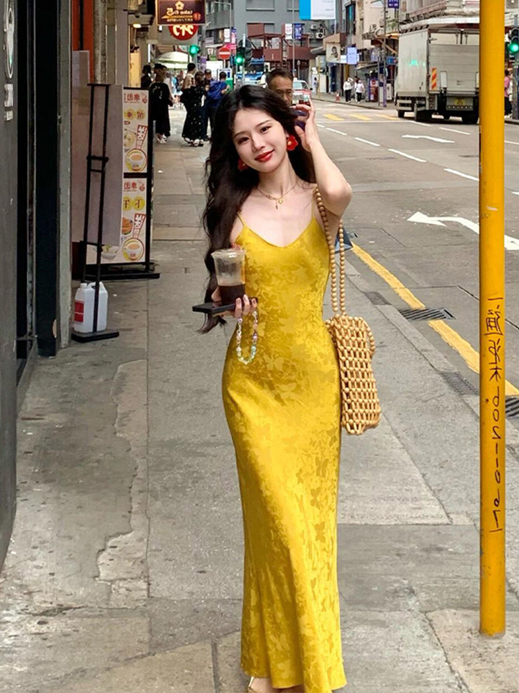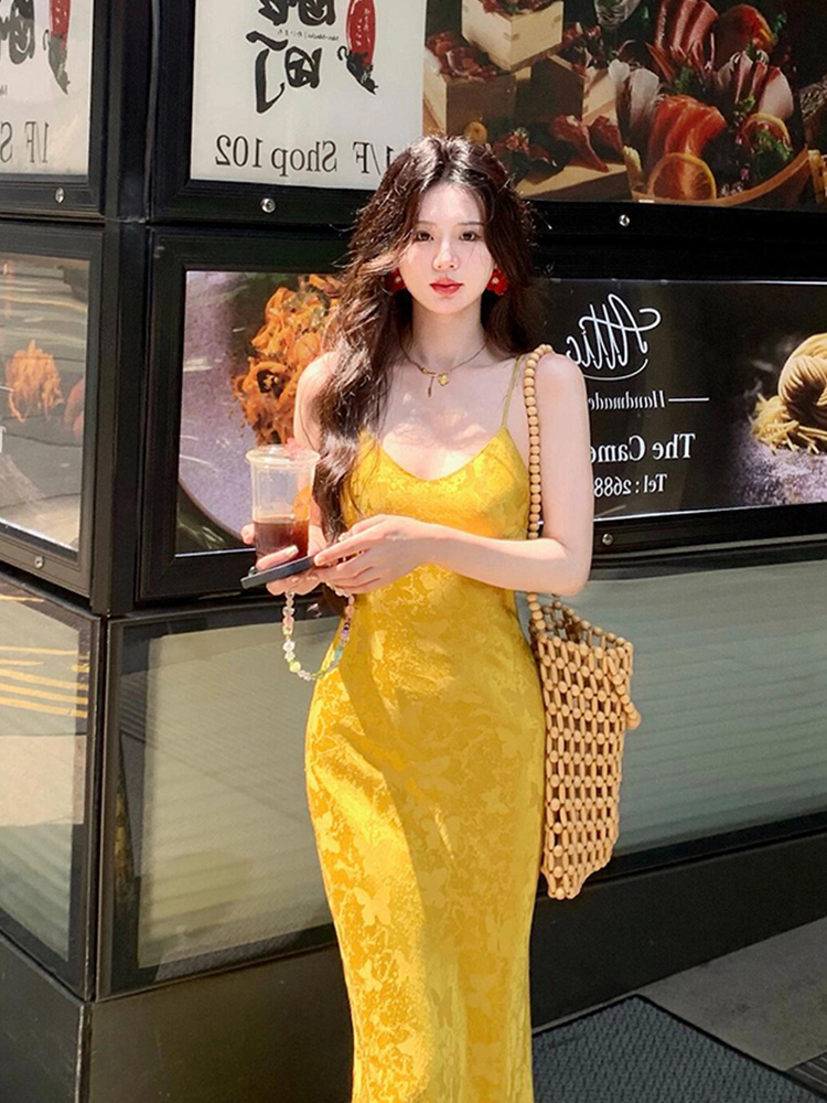 修身 胖mm国风复古提花v领吊带连衣裙女夏季 包臀长裙子 欣争艳 XZY