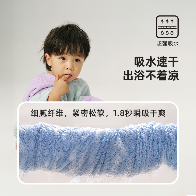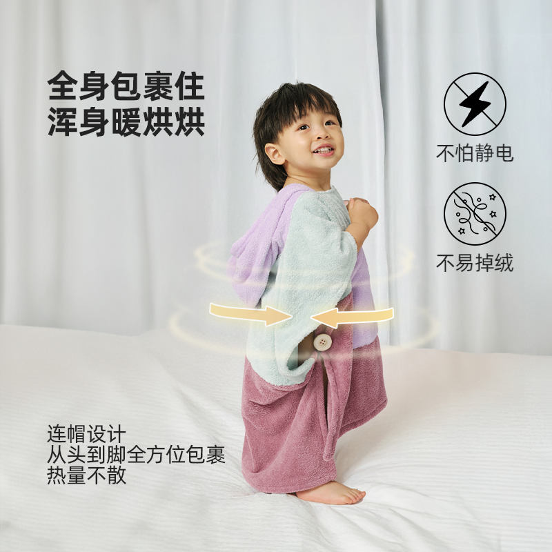 NEVERMIND儿童浴袍秋冬女童斗篷可穿式 吸水速干男童连帽浴巾