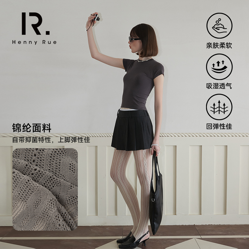 HENNY 袜春秋夏黑色丝袜女 RUE亨尼露黑丝渔网袜性感透肉连裤