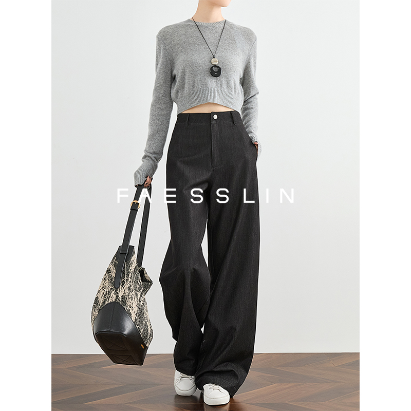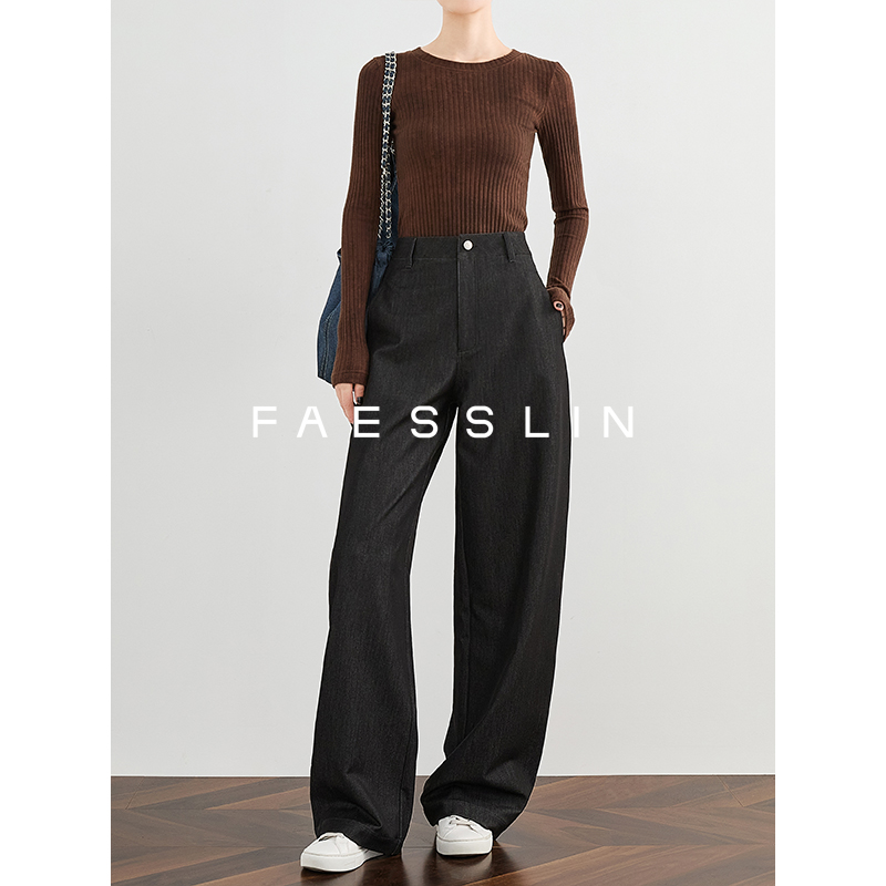 高个子宽松镰刀香蕉裤 垂感休闲裤 女春秋款 FAESSLIN高腰加长牛仔裤