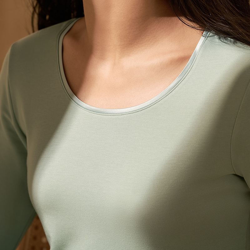 曼妮芬舒适上衣打底暖衣含蚕丝女士大圆领秋衣20210566 轻暖