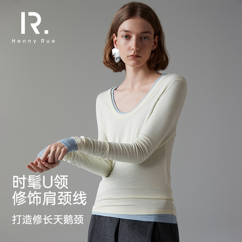 百搭打底衫 袖 RUE亨尼露秋冬女士大圆领慵懒U领羊毛长 HENNY