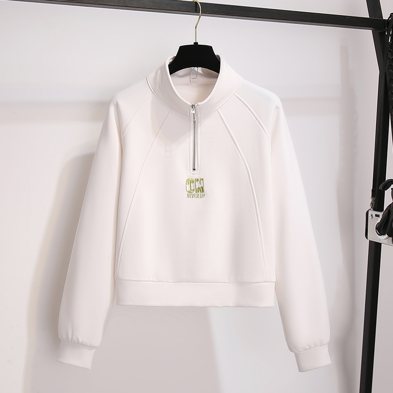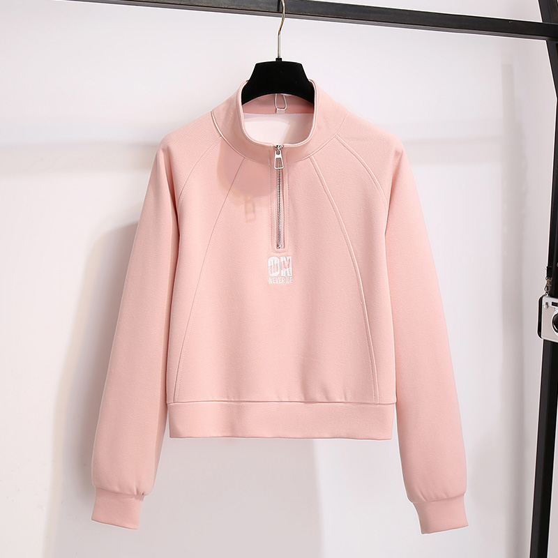 短款 新款 上衣 卫衣女2025年早春秋季 绿色立领无帽套头半拉链插肩袖