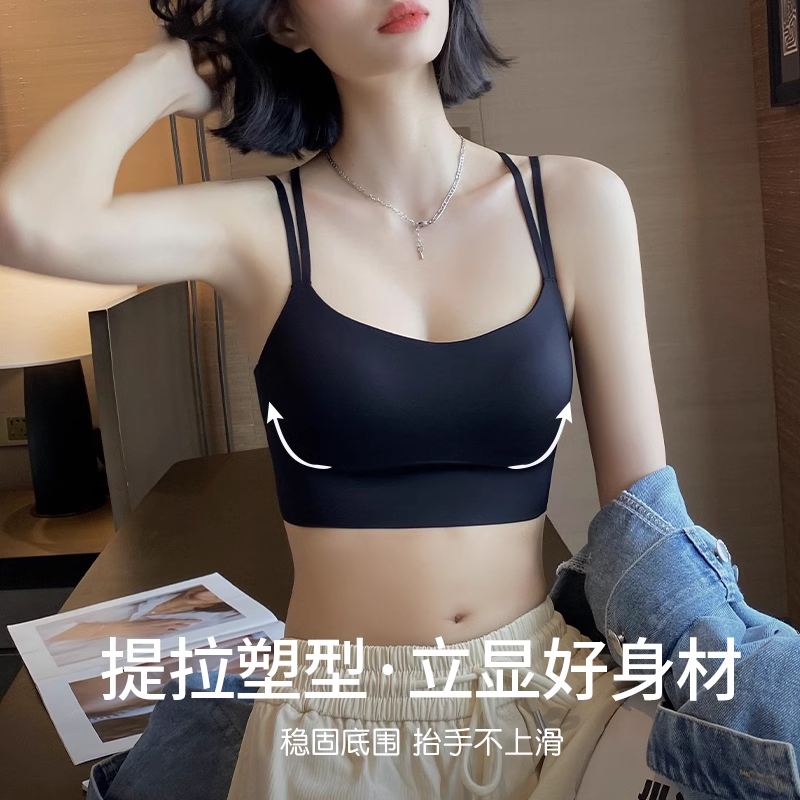 提拉无痕软支撑内衣女小胸聚拢薄款 提拉文胸罩 运动一体美背背心式