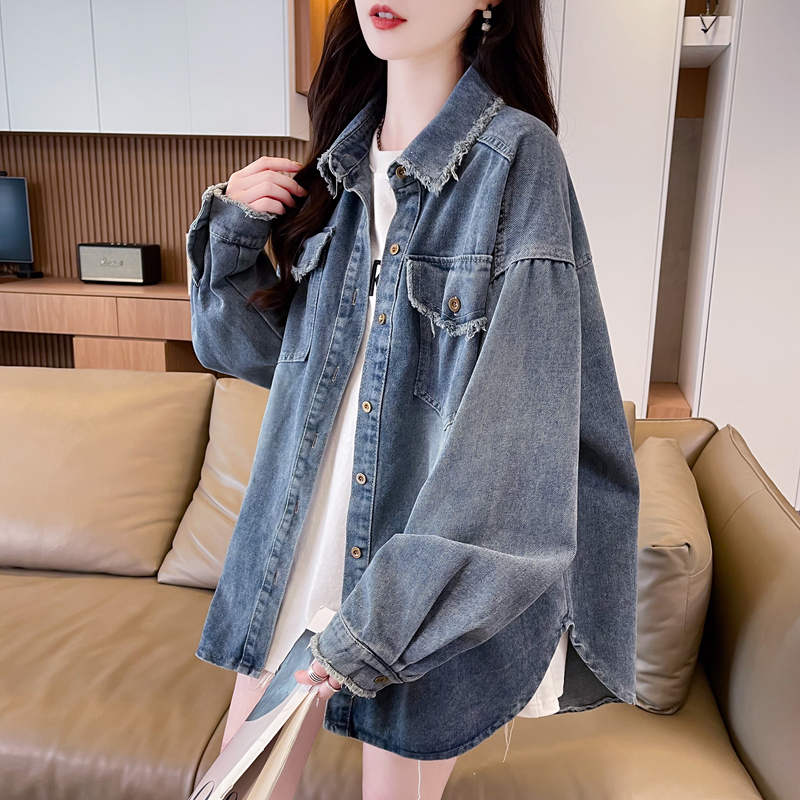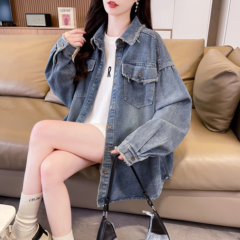 时尚 爆款 胖mm大码 牛仔外套女春秋薄款 洋气慵懒风上衣 港风复古开衫