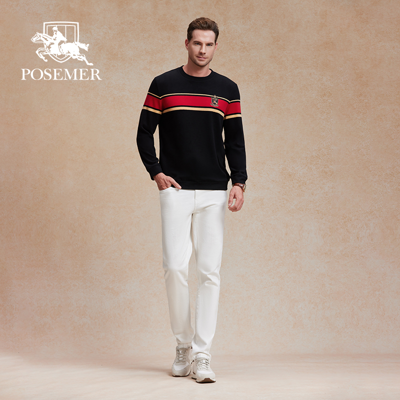 T恤新奥绒亲肤柔软保暖舒适大红条 圆领长袖 Posemer 堡马秋冬新款
