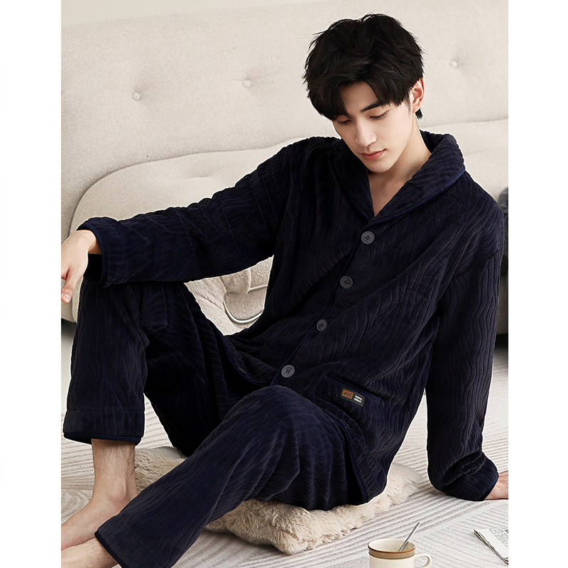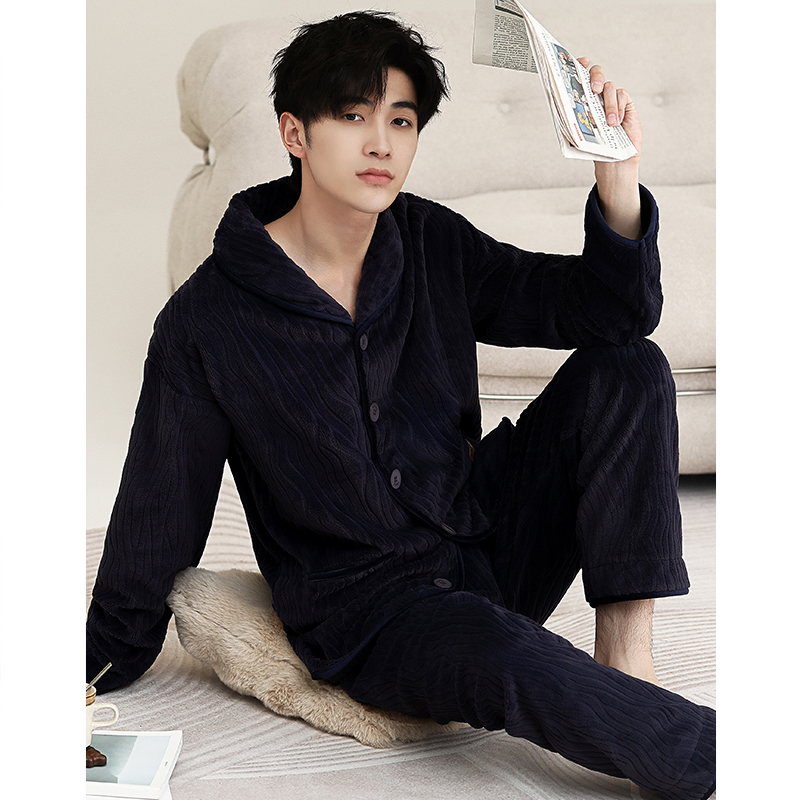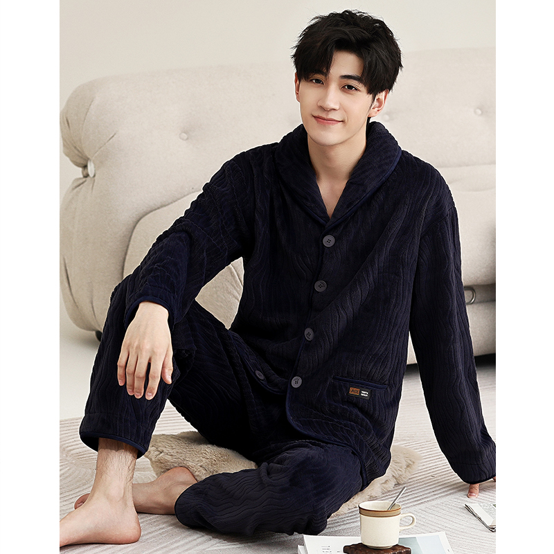 法兰绒大码 睡衣男士 秋冬款 珊瑚绒加厚加绒男款 冬天保暖家居服 冬季
