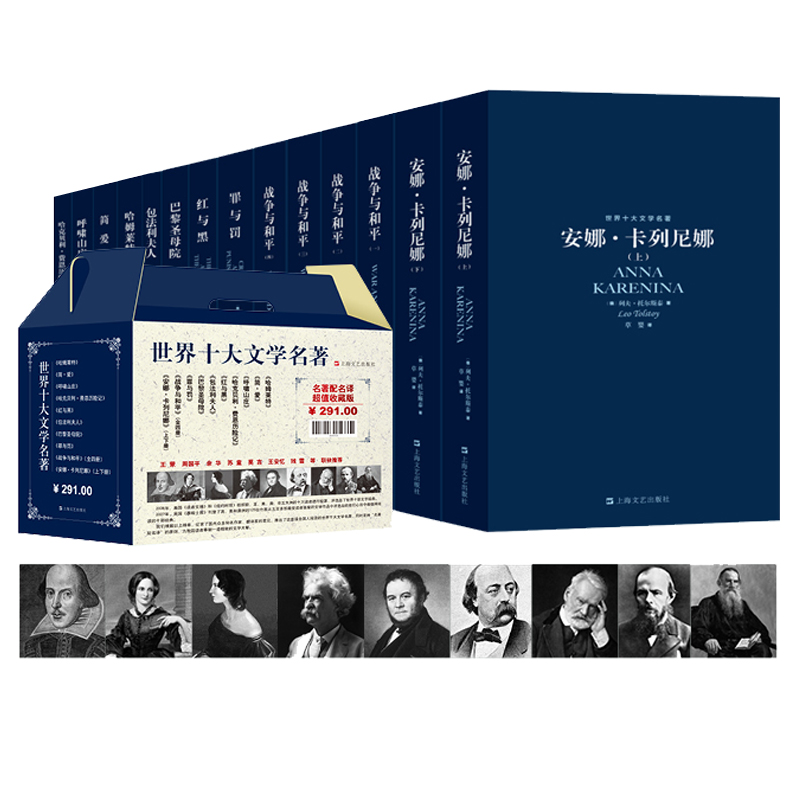 世界十大文学名著礼盒版 全10册巴黎圣母院哈姆莱特简爱呼啸山庄红与黑罪与罚战争与和平安娜卡列尼娜包法利夫人哈克贝利费恩历险记