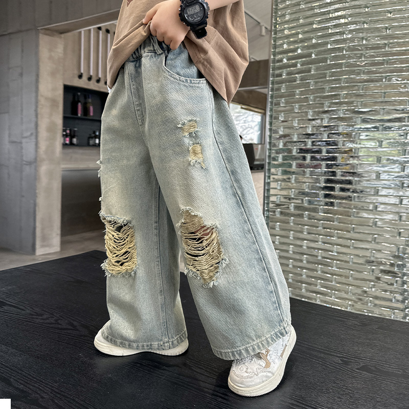 女童裤 儿童裤 子2025秋冬新款 牛仔裤 子 中大童直筒阔腿裤 植木童装