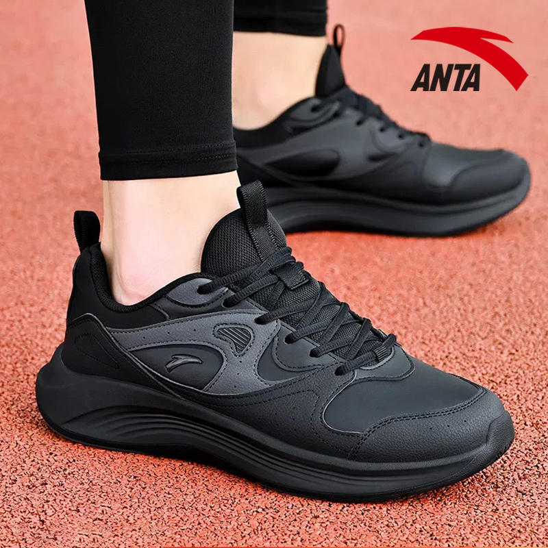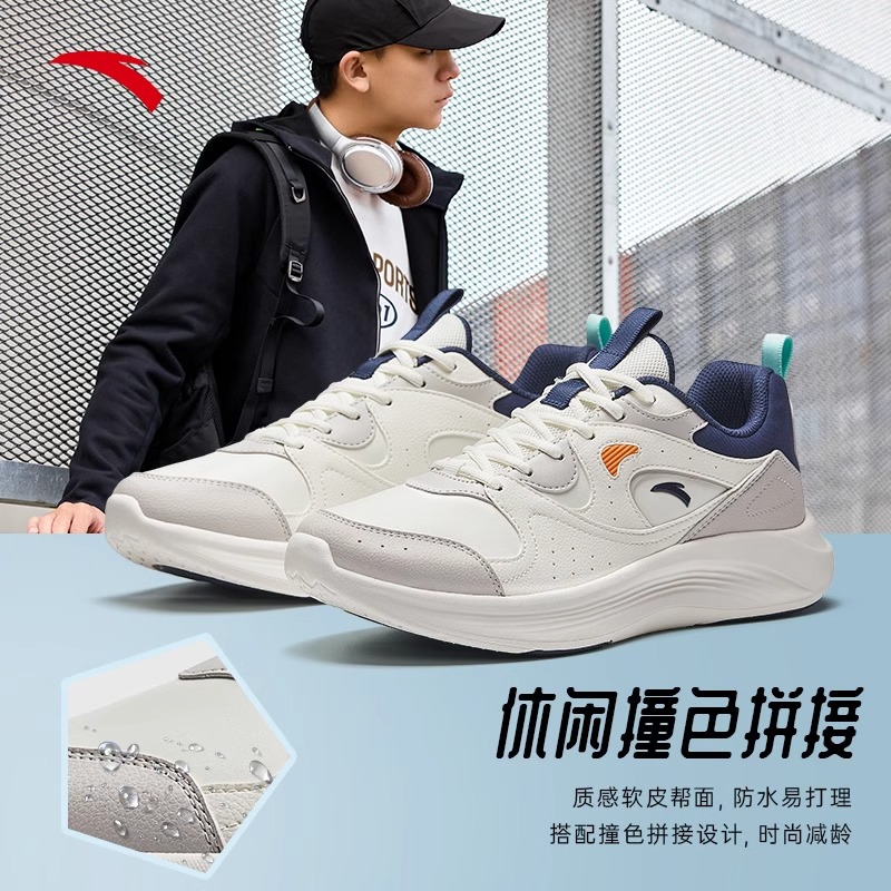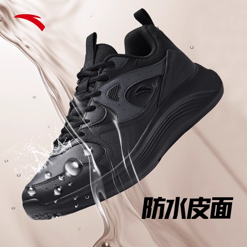 官方旗舰皮面防水轻便软底减震跑步鞋 安踏运动鞋 新款 2025冬季 男鞋