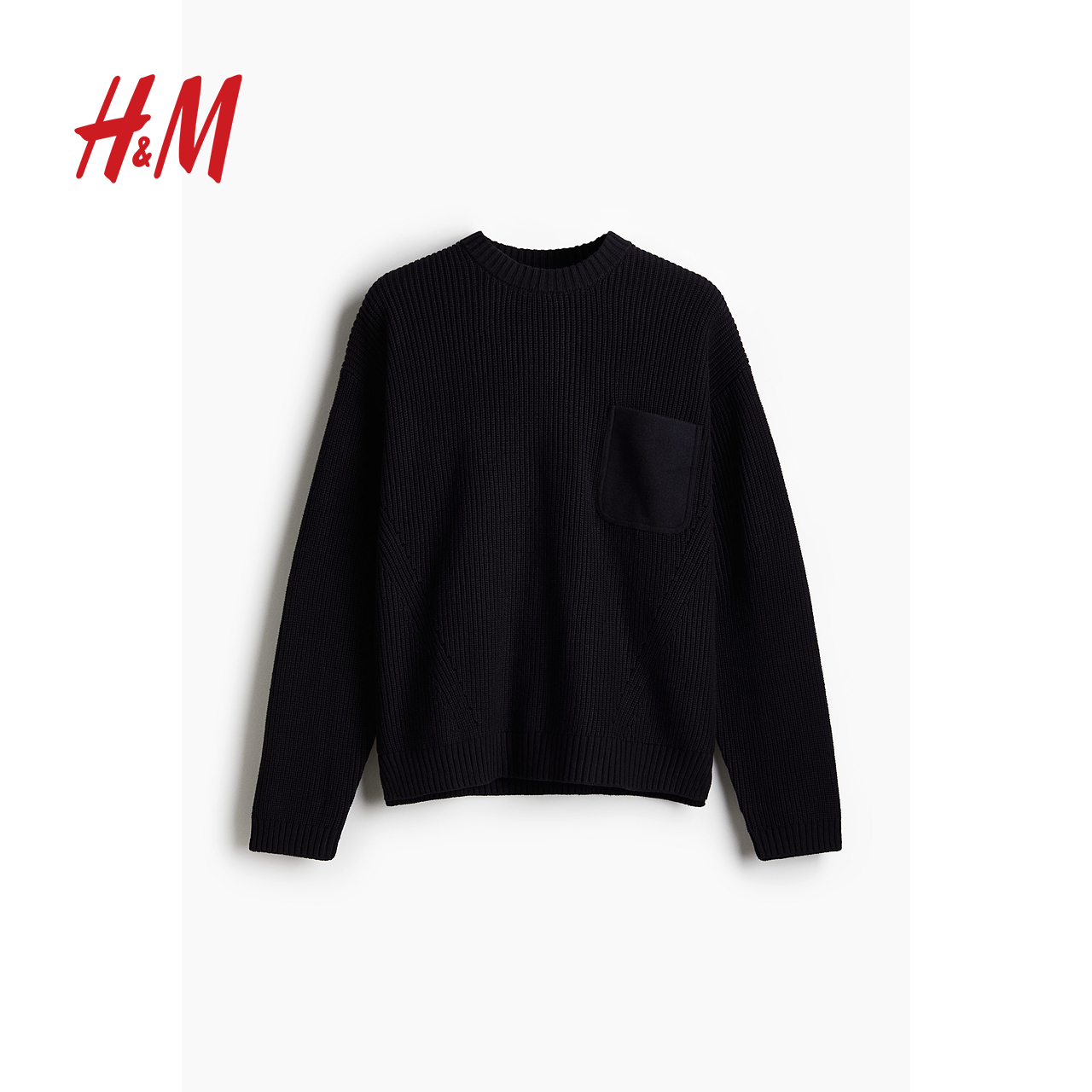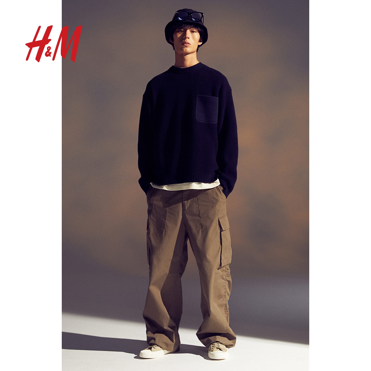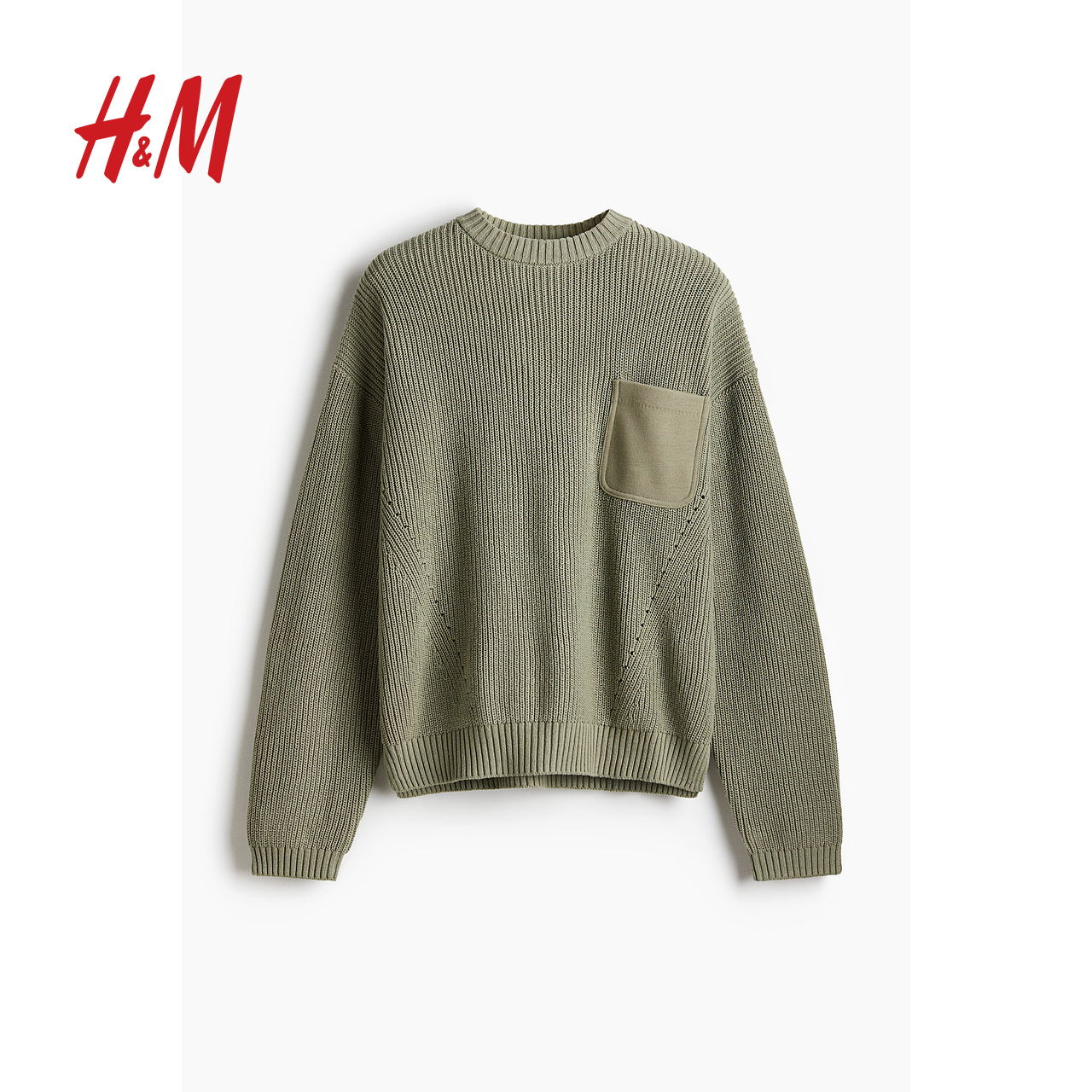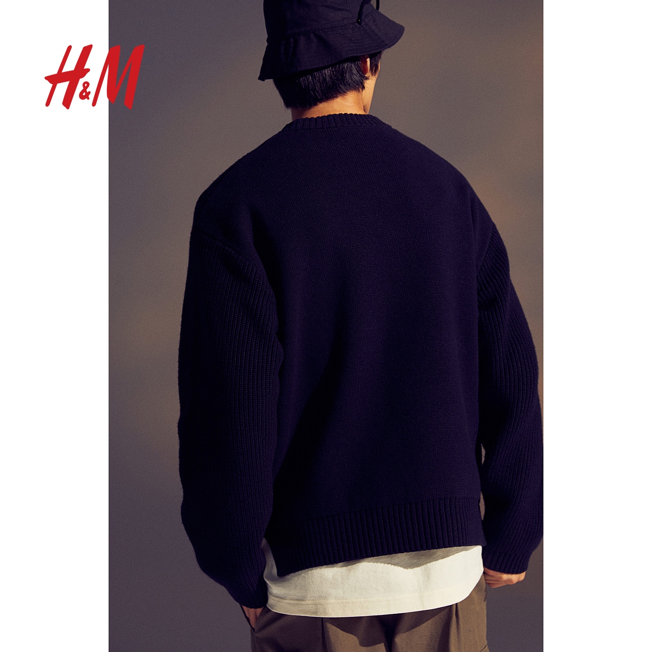 简约圆领套头长袖 秋季 休闲宽松毛衣1238528 针织衫 HM男装