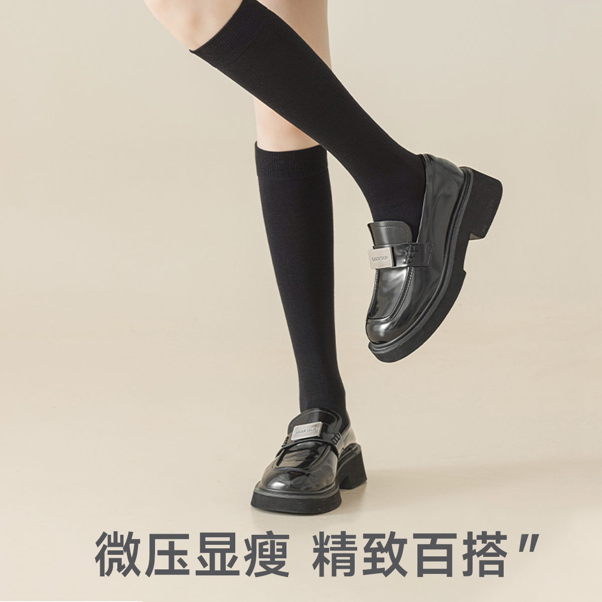 小腿袜子女春秋季 JK潮 过膝袜纯棉中筒袜微压显瘦无骨长筒长袜夏季