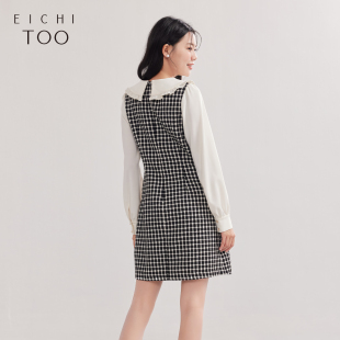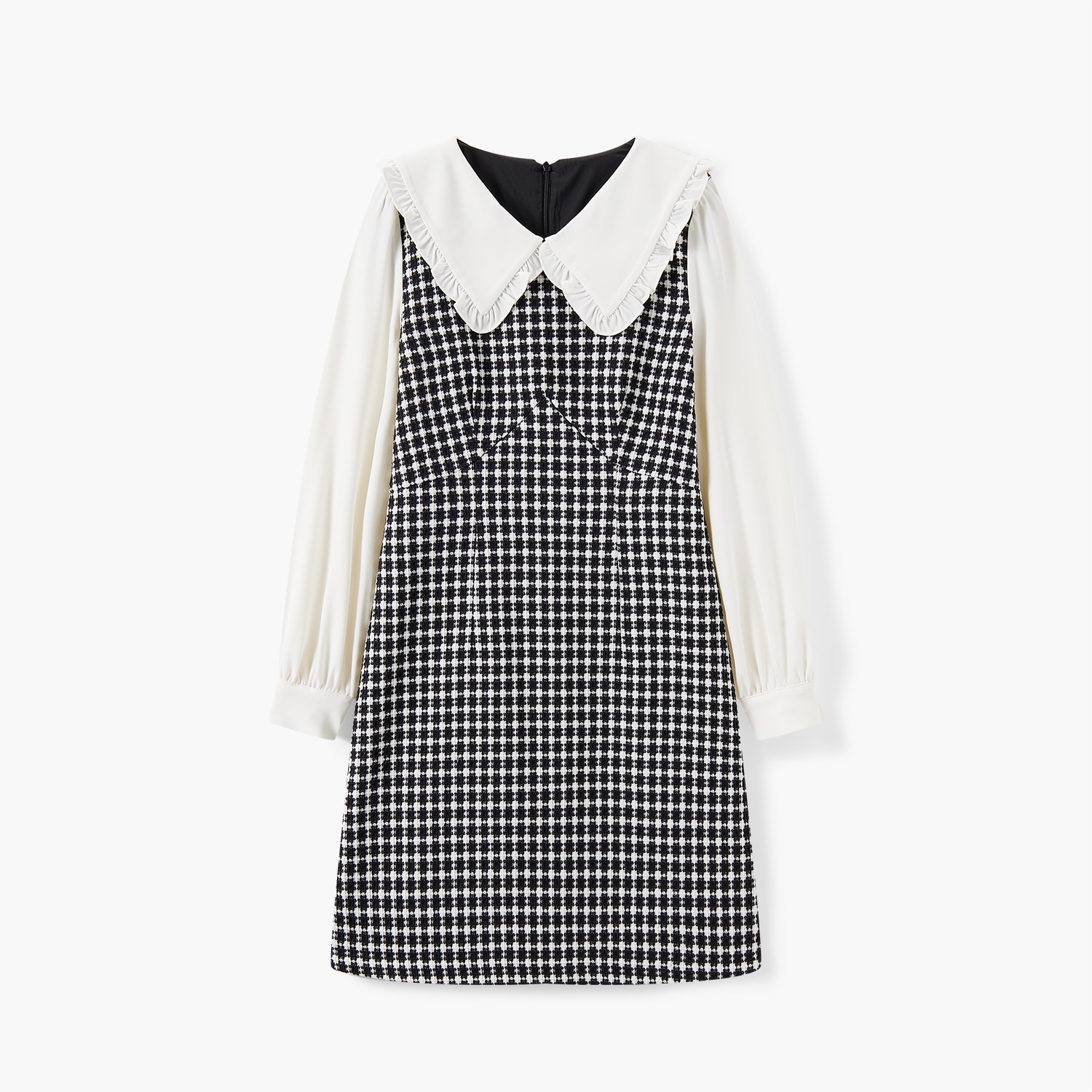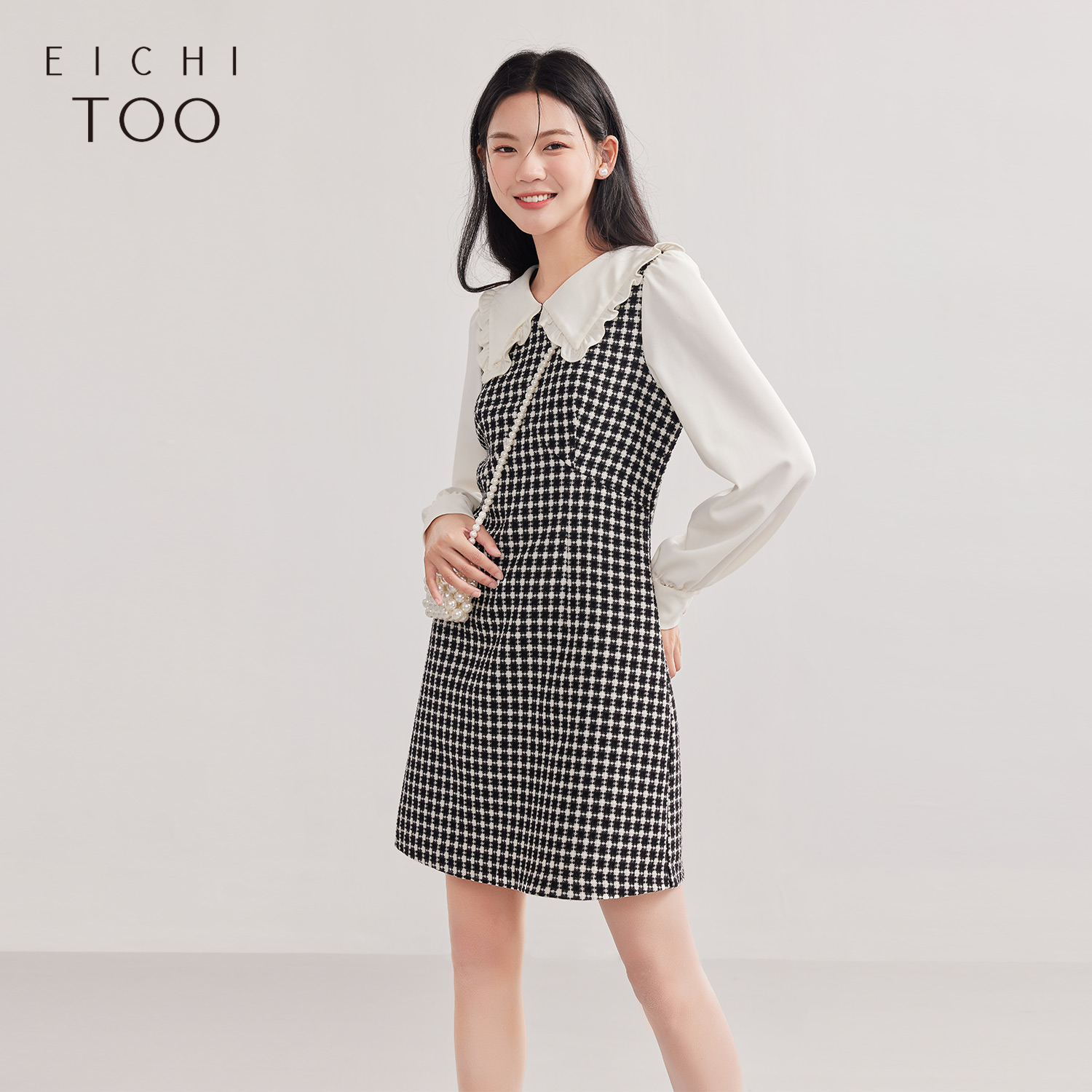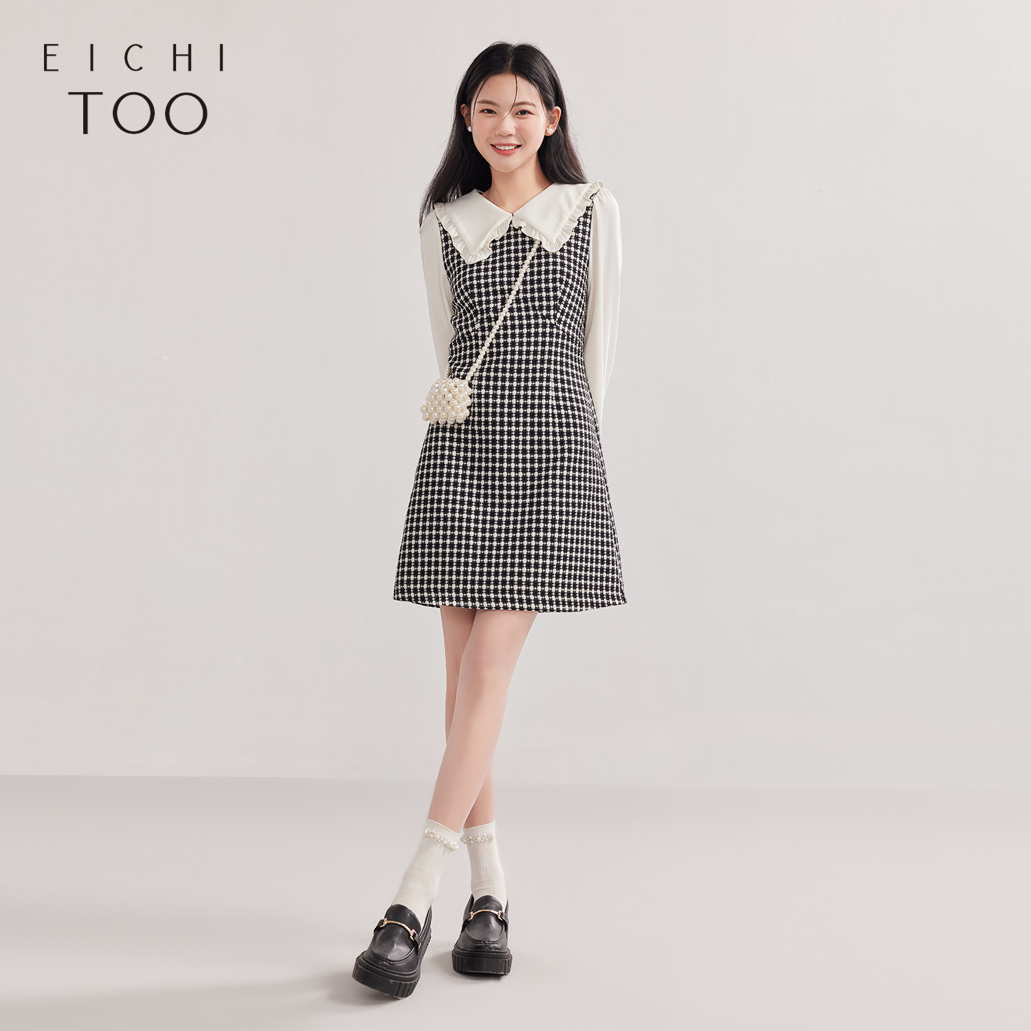 新款 Eland衣恋连衣裙女法式 小香风荷叶边立领短裙2025秋季