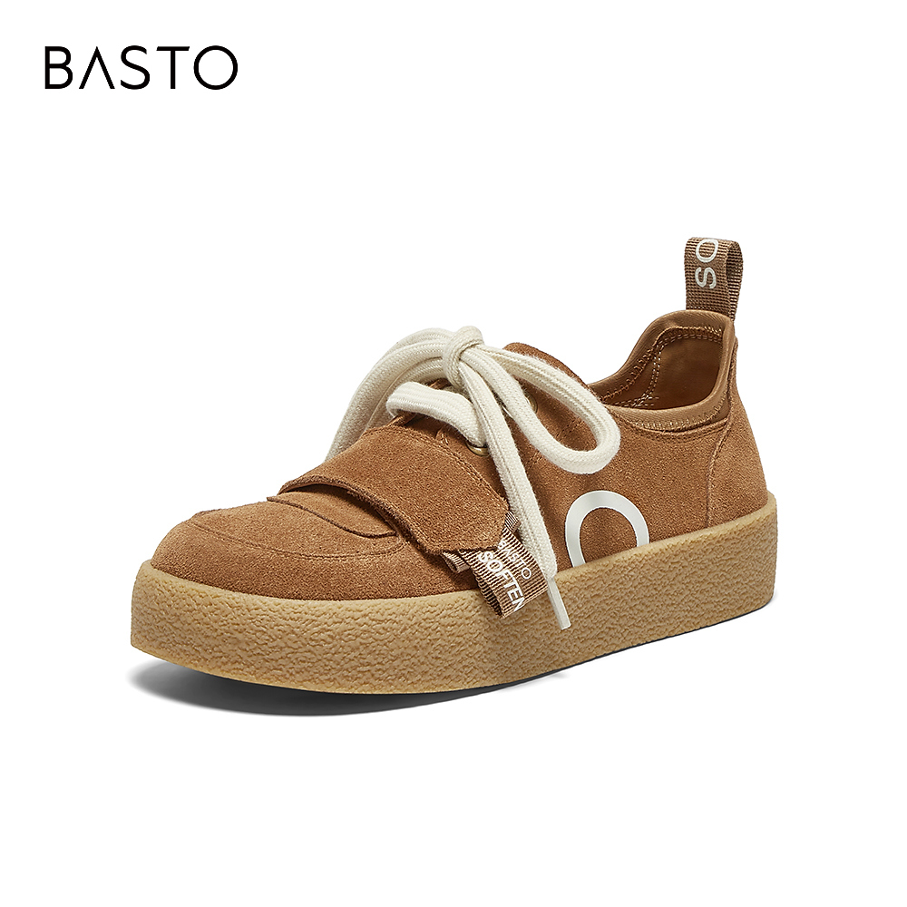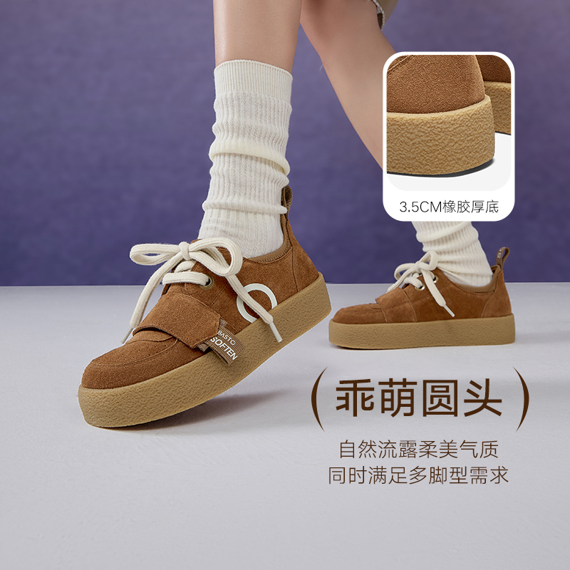 S8063AM5 松糕厚底增高休闲女单鞋 百思图2025春新款 潮流真皮袋鼠鞋