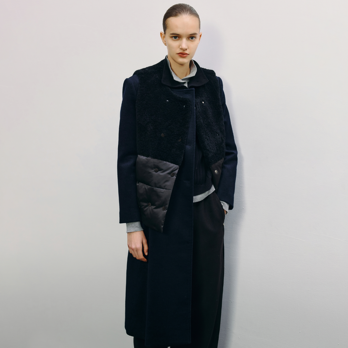 Marisfrolg玛丝菲尔2025冬新款 大衣 廓形环保皮草外套保暖毛呢长款