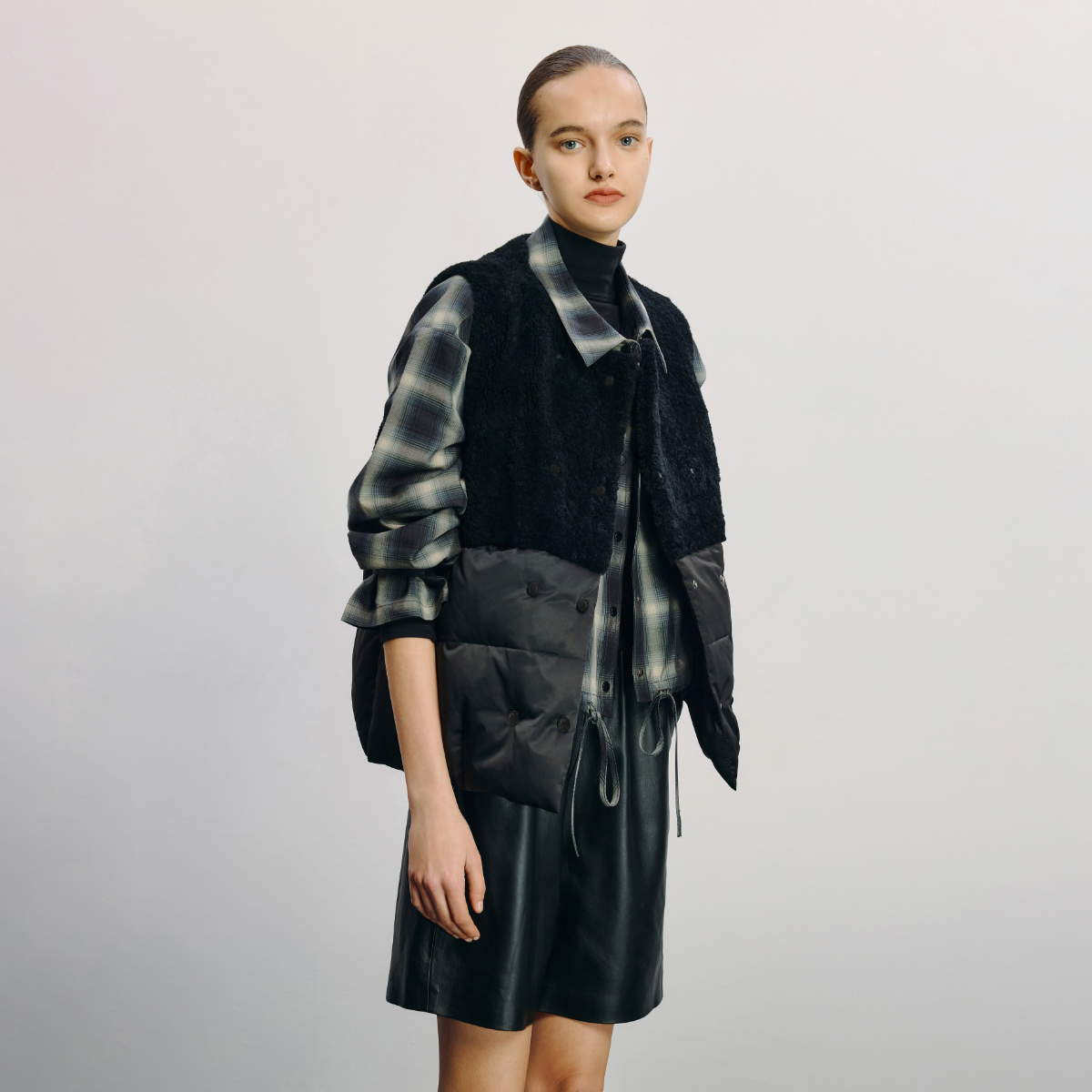 亮片纯色短款 新款 时髦皮草马甲3254FU002 Moda皮草女2025冬季 Vero