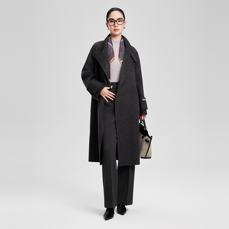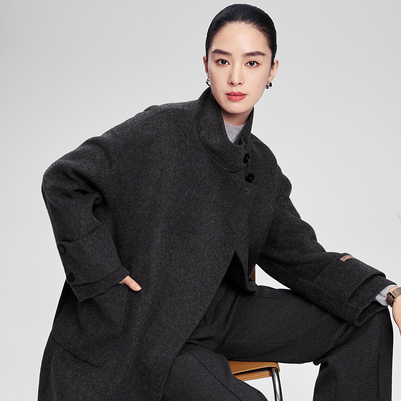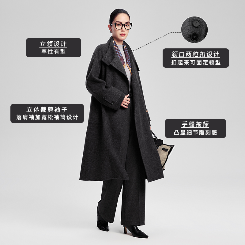 赢智尚灰色毛呢大衣外套女厚款 淡人高知老钱风穿搭宽松慵懒风韩版