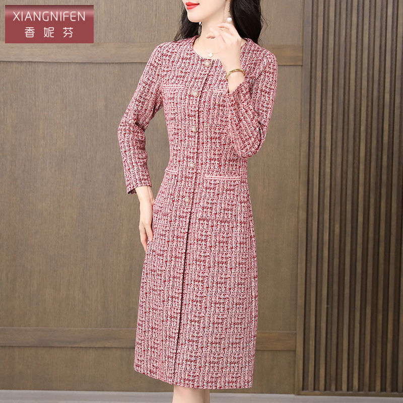 香妮芬小香风阔太太洋气高贵连衣裙女2025新款 高端气质妈妈裙 秋季