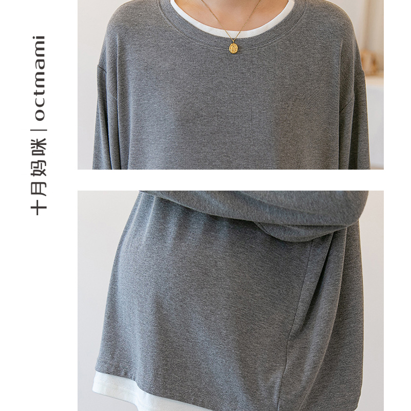 T恤上衣怀孕宽松秋装 十月妈咪孕妇卫衣2025新款 春秋假两件长袖