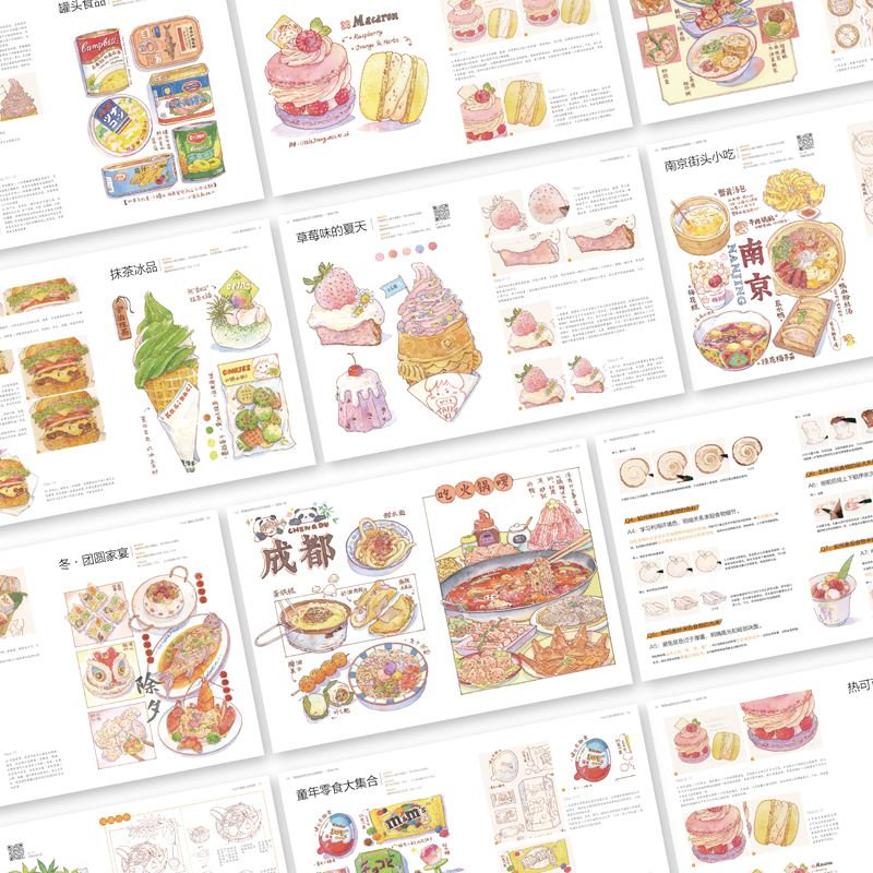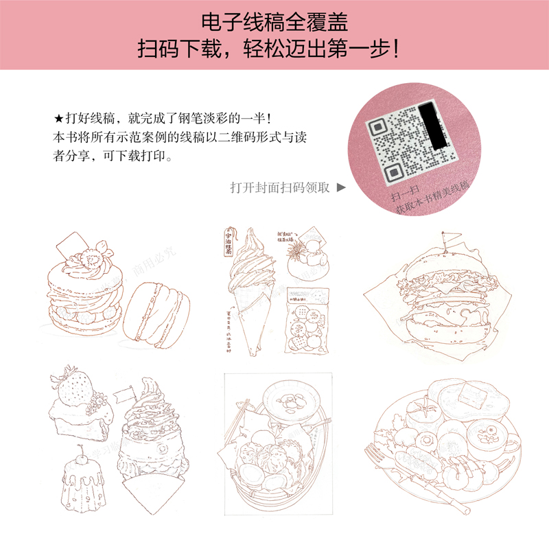 零基础钢笔淡彩实用教程little 美食插画 jiang著美食小物 花卉植物日记手账插画视频教学 社 美食小物 河南美术出版 21张温暖治愈