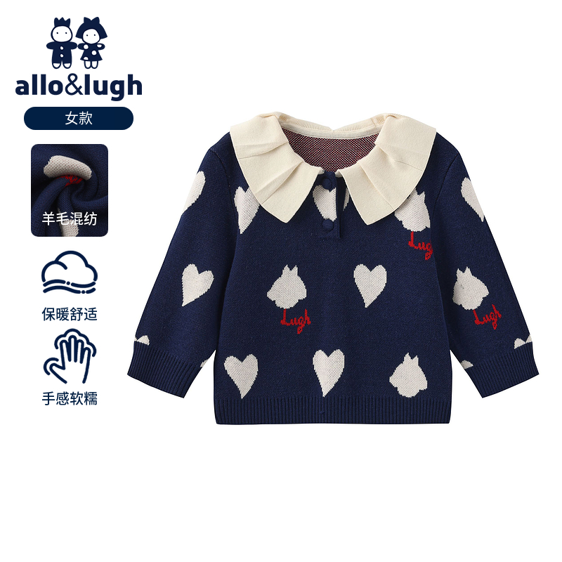 可爱上衣 宽松2025新款 森马针织开衫 女冬半高领小狗提花牛角扣毛衫