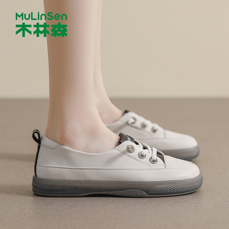 百搭休闲女士运动鞋 木林森女鞋 厚底浅口一脚蹬小白鞋 夏季 2025新款