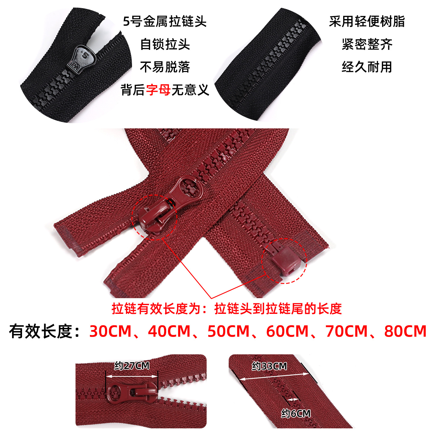 5号金属拉链青古铜齿单头开尾拉链彩色拉链夹克羽绒服外套拉链条