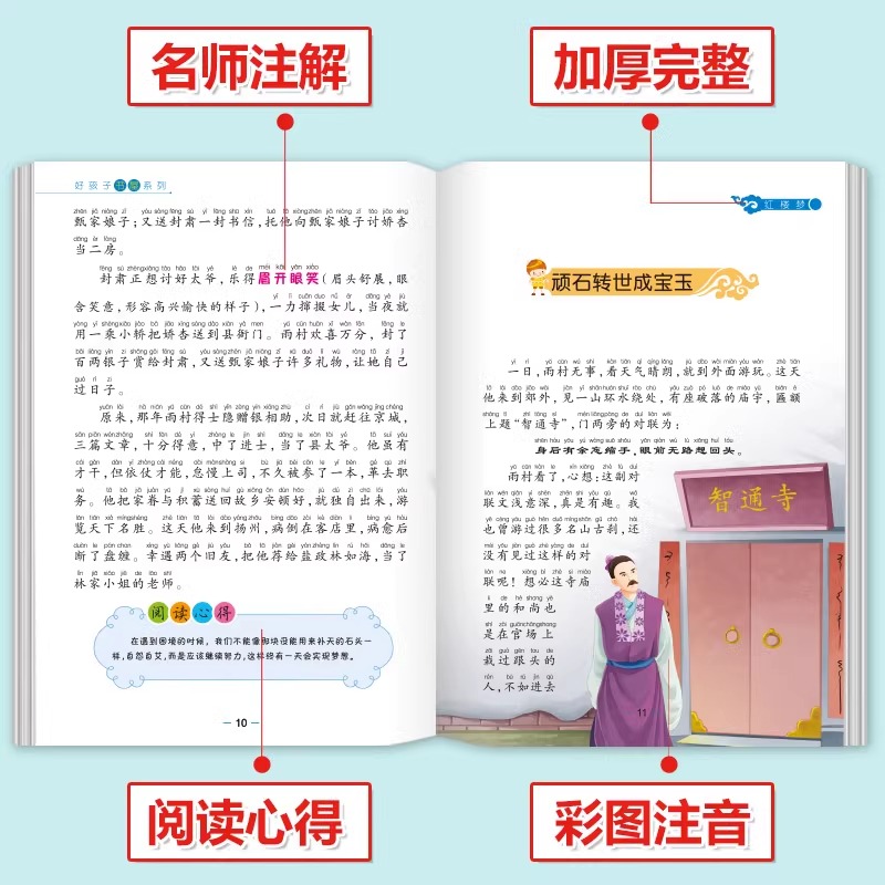 带拼音少年版 红楼梦小学生版 儿童版 原著正版 四大名著全套注音版